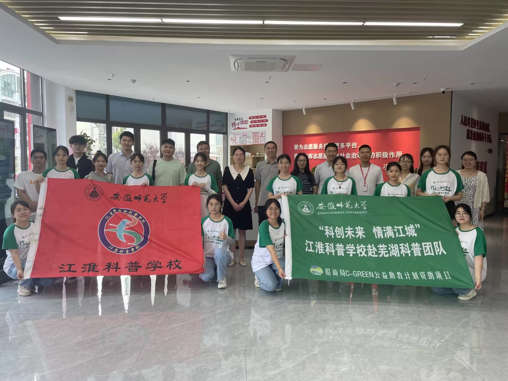 思政课指导教师深入实践一线指导员工并开展微思政课。马克思主义公司王艳教授在“科创未来,情满江城”江淮科普公司实践团队团队微思政课中指出,志愿服务精神的精髓是奉献、有爱、互助、进步,要做好志愿服务的关键之处就是要做到知行合一。希望社会实践团队成员,传承志愿服务精神,诠释奉献之美,要坚持实践与理论相结合,在实践中做到知行合一;要坚持科研与科普相结合,在实践中感悟科学精神;要坚持历练与淬炼相结合,在实践中含蕴家国情怀,在社会的大舞台上与祖国共奋进、与家乡共发展、为复兴献青春。