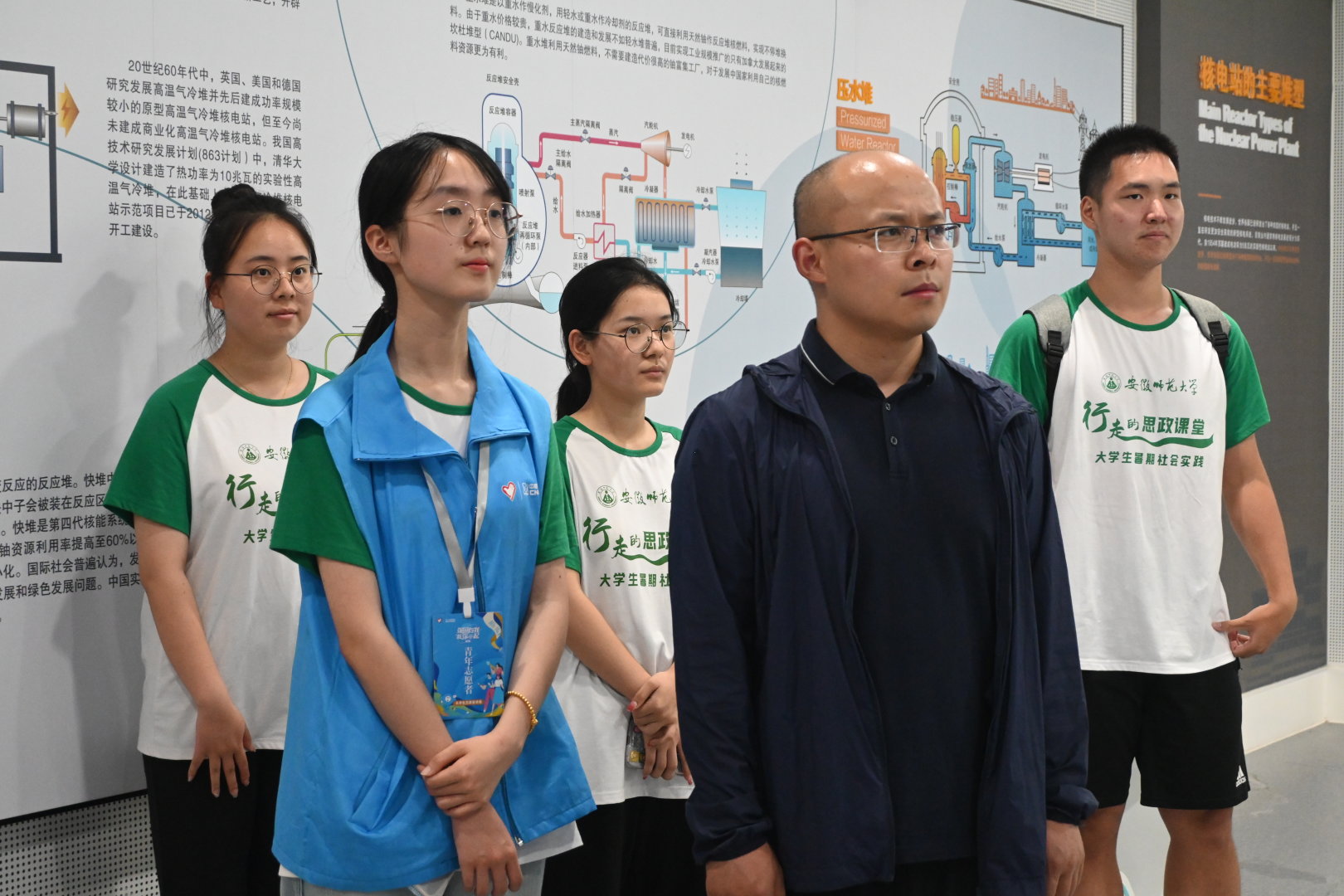 7月6日下午,马克思主义公司孙辉老师携手英国正版365官方网站赴芜湖“强‘核’报国,星向未来”本科生社会实践团队,共同参观安徽省核科技馆,听取员工讲解“两弹一星”精神,并开展思政课。孙辉老师指出,暑期社会实践团队成员之间应该既要有明确的责任分工,又要加强彼此之间的联系,增强团队成员的集体责任感。同时,针对宣讲的主题,将思想政治融入到“两弹一星”精神之中,提出“‘两弹一星'精神独立自主”的概念,教导团队成员要在完成自身学业基础追求的前提之下,尽可能地追求精神方面的成功。今后要将“两弹一星”精神融入思政课教学中,充分发挥意识的能动作用,为培养中国特色社会主义事业的建设者和接班人提供思想引领。
