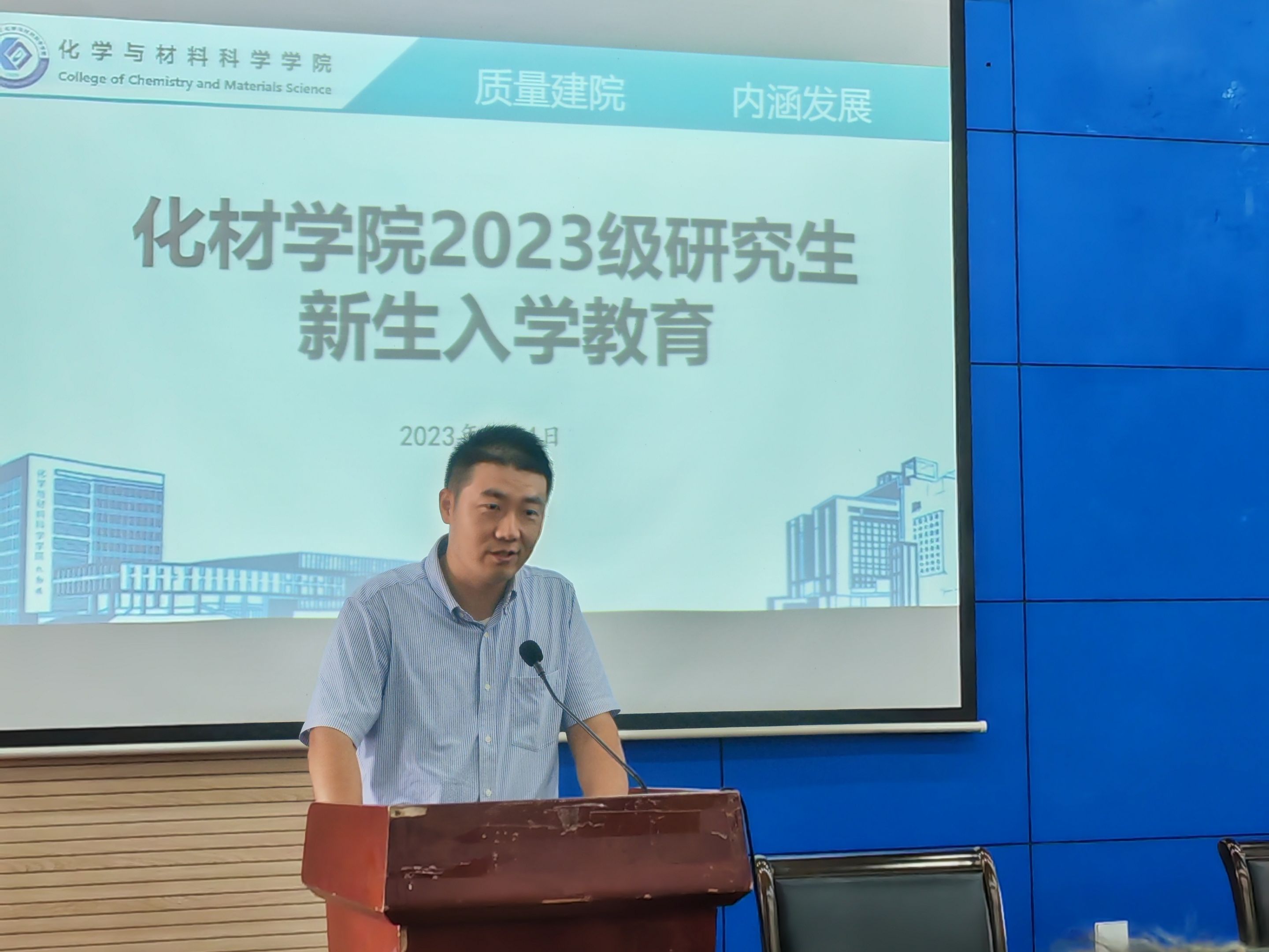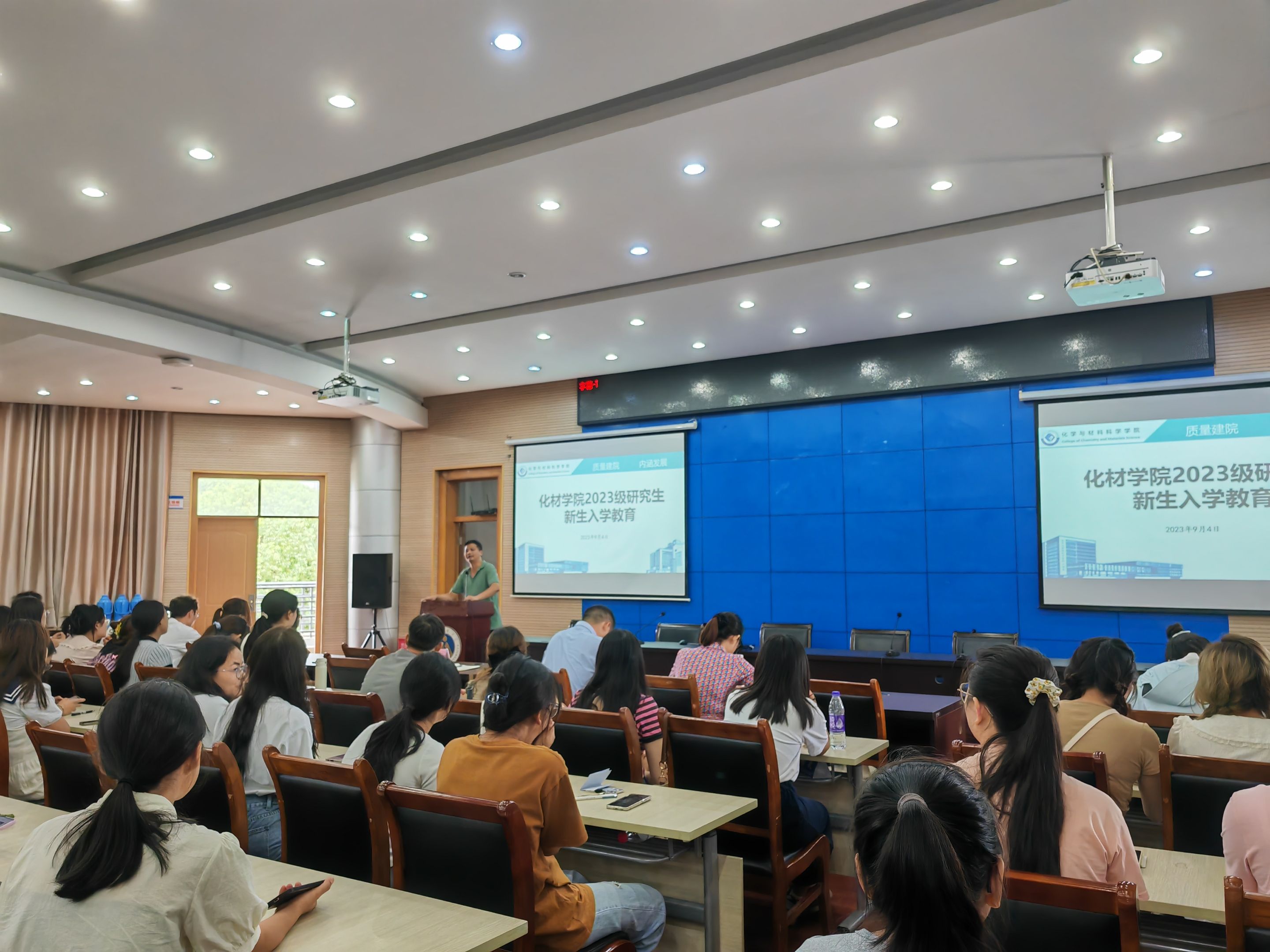 周双六围绕“办学情况、研究生管理制度、研究生科研安全、研究生学习特点与要求”四个层面向同学们进行了深入且详细的介绍,从专业建设、团队建设、队伍建设、文化建设等方面,展开介绍了化材院各专业的硬件条件和人才培养成效。随后,解读了《研究生管理制度与规定》和《英国正版365官方网站研究生学籍管理办法》相关内容,再次强调实验室安全的重要性。此外,周双六希望2023级研究生做好角色转变,远离舒适圈,永葆锐气和长时间的投入,做好自我管理,使研究生生涯学有所成、学有所获、生活愉快。