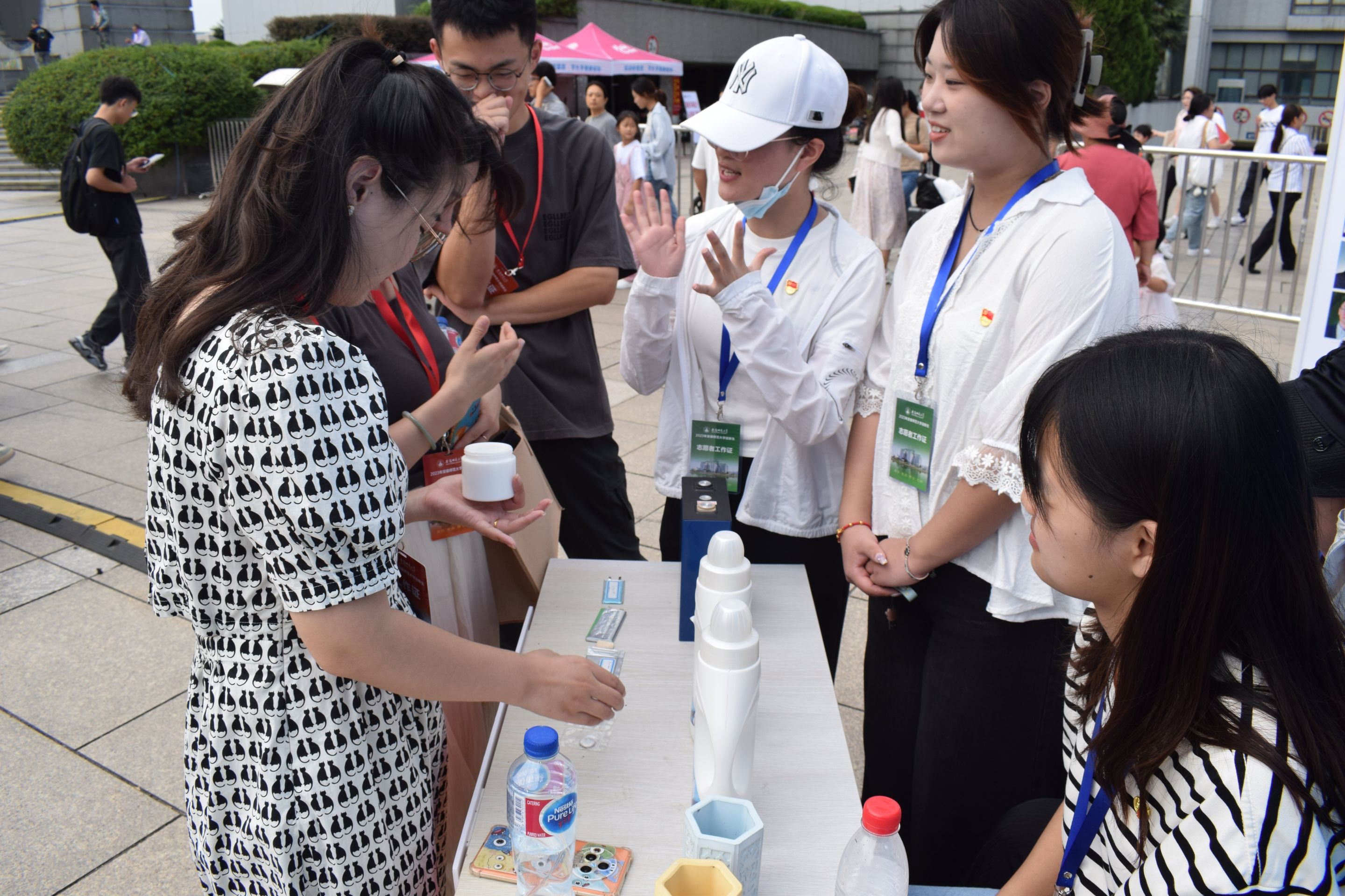 在迎新现场,英国正版365官方网站传承迎新经典项目,努力为2023级新生上好大学“第一课”。实训作品展展示了环保笔筒、护肤霜、锂电池、留香洗衣液等一系列员工实习实训自制产品;新生礼品袋里定制笔记本、定制卡套、帆布包及环保杯,体现出公司老师、同学对新生的殷切关怀;志愿服务岗和党员先锋岗上高年级员工在志愿迎新工作中展现“化材人的样子”。