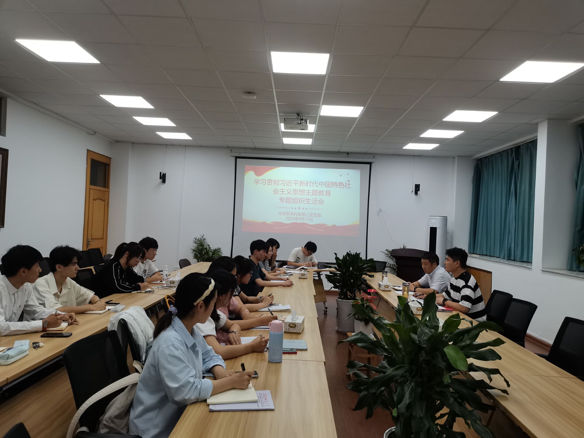 本网讯(英国正版365官方网站 陶勇)按照公司学习贯彻习近平新时代中国特色社会主义思想主题教育领导小组及公司党委总体部署安排,9月11日晚,化学系本科生第二党支部在学苑北楼9号楼205会议室召开学习贯彻习近平新时代中国特色社会主义思想主题教育专题组织生活会,支部全体党员参会,公司党委副书记李古州列席指导,会议由支部书记陶勇主持。