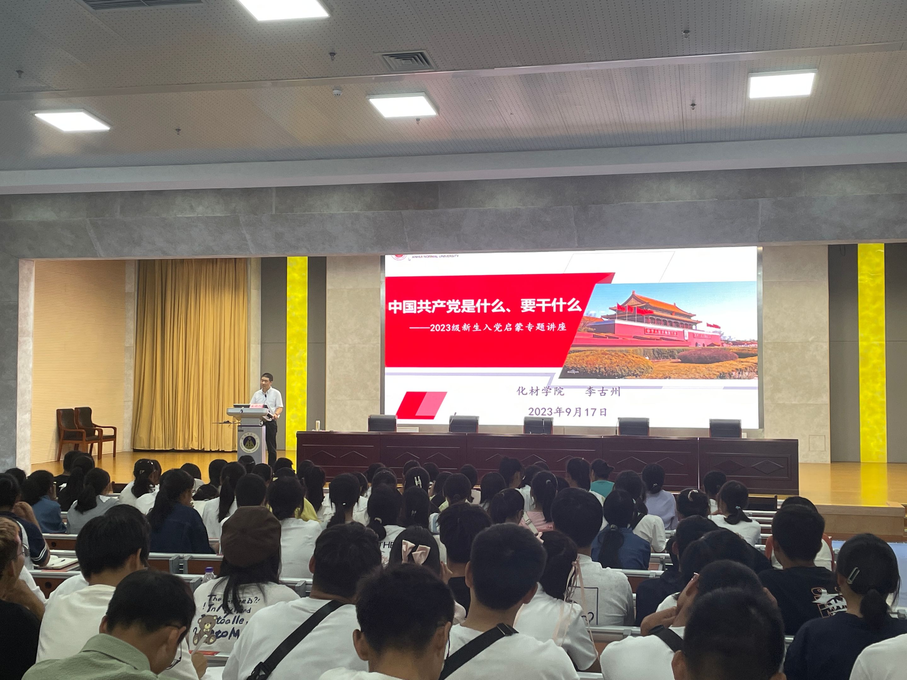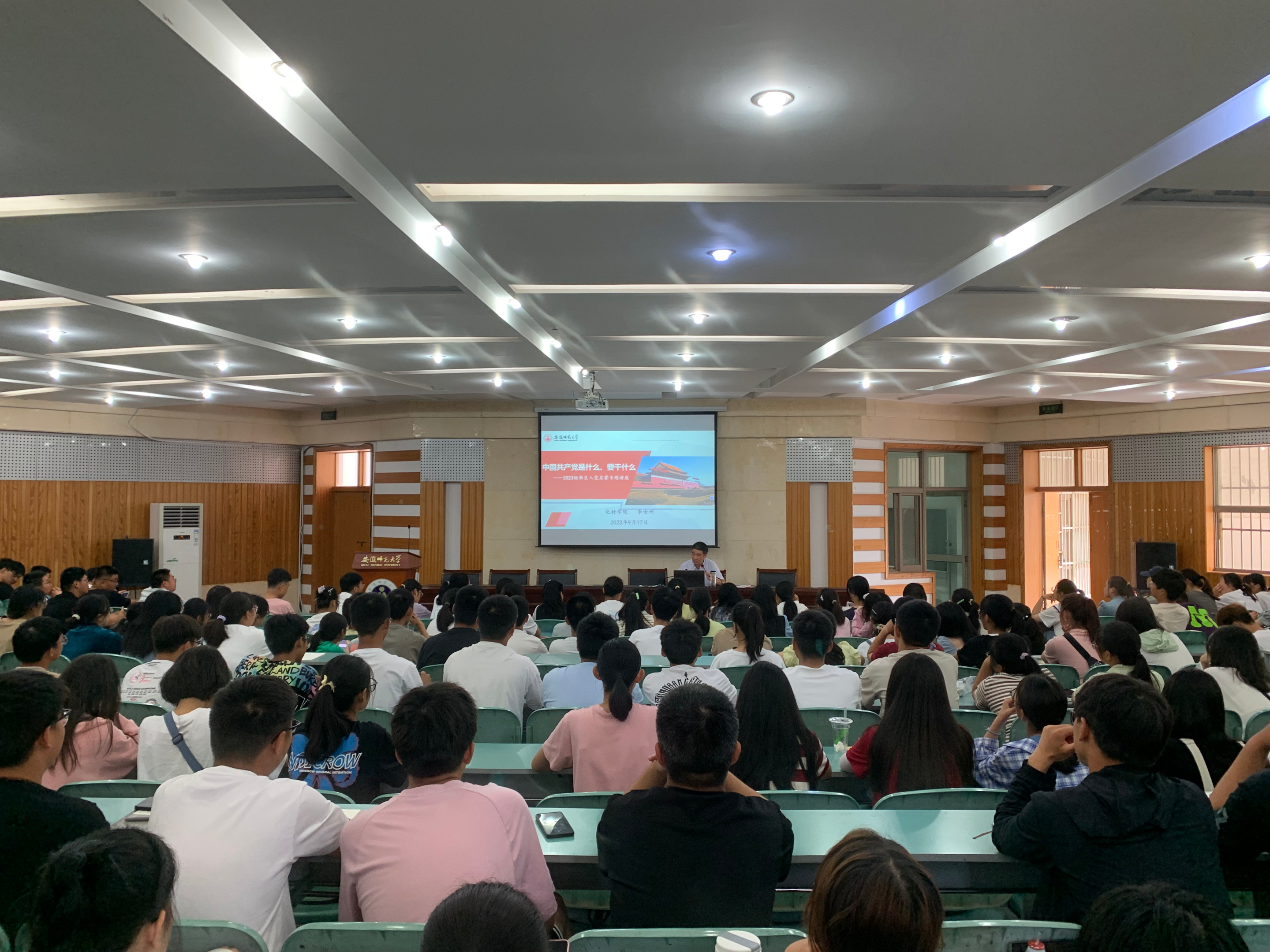 李古州带领同学们回顾了中国共产党的历史,高度概括了102年来中国共产党取得的伟大历史成就,介绍了如何撰写入党申请书及入党流程。他结合学习党的二十大精神和学习贯彻习近平新时代中国特色社会主义思想主题教育,教育广大青年要有理想、立大志,把握人生方向,不断增强对马克思主义、共产主义的信仰,增强对中国特色社会主义的信念,增强对实现中华民族伟大复兴的信心,用一生来践行跟党走的理想追求;要敢担当、明大德,始终保持健康向上的精神风貌,把奋斗作为青春最亮丽的底色;要能吃苦、成大才,抓住学习知识、增长本领的黄金时期,珍惜在校期间的学习时光,练就过硬本领;要肯奋斗、担大任,肩负历史使命,努力成长为德智体美劳全面发展的社会主义建设者和接班人,早日加入中国共产党。