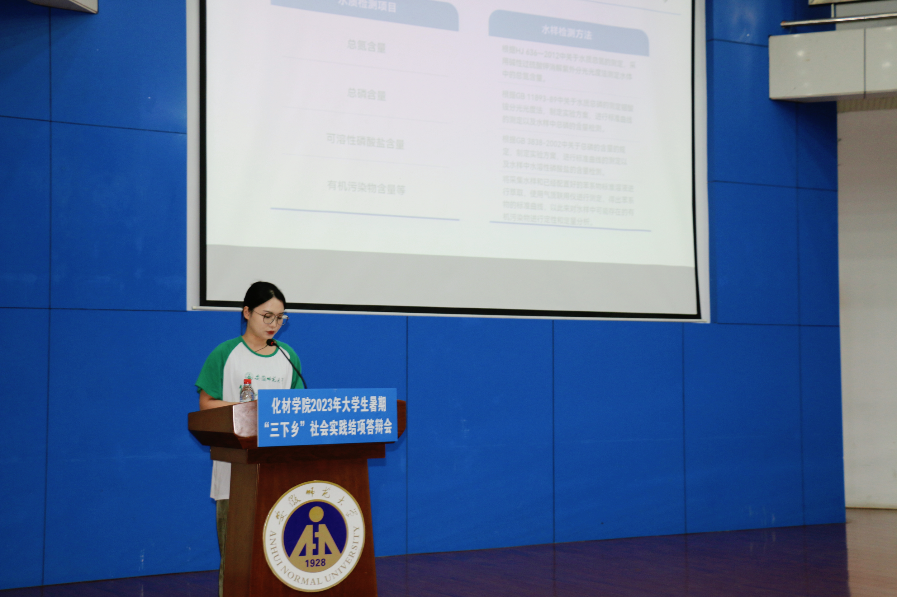 组织委员秦晓璐对暑期社会实践情况进行了总结概述,今年暑期社会实践共有665人参与,实践团队共开展理论宣讲61场次、主题教育16场次、形成论文或调研报告28篇、新建3个实践基地,共开展宣教支教活动近500小时,录制实践微视频30余个,用爱心和责任心奏响“永远跟党走 奋进新时代”的主旋律。随后各团队按抽签顺序,采用演示文稿与演讲相结合的形式,逐步从前期准备、实践主题、开展过程、实践成果等多方面进行展示,充分利用四分钟的时间将实践情况娓娓道来。汇报过程中各团队主题明确、逻辑清晰,用生动的照片、真实的数据展现了团队的努力和新时代青年员工的风采。