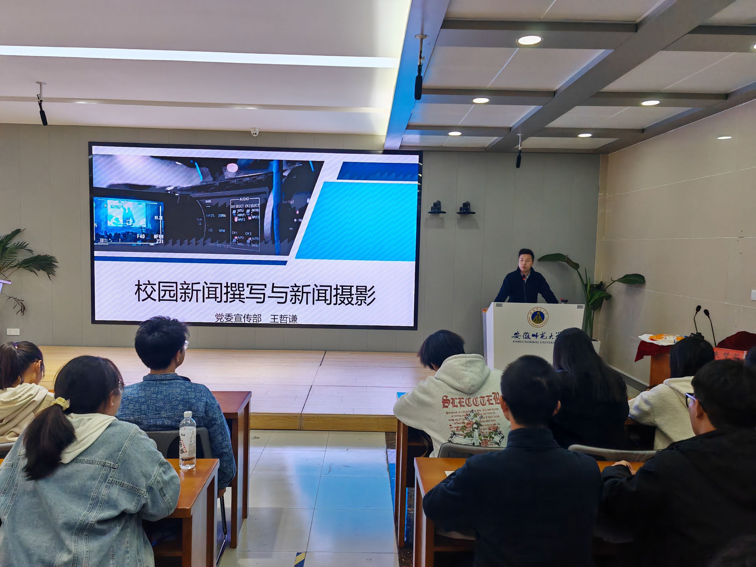 夯实理论基础,提高工作能力。为提升同学们的新闻写作能力及摄影技巧,公司党委宣传部新闻宣传科副科长王哲谦为同学们讲解校园新闻和新闻摄影的相关知识。他从新闻的定义出发,对新闻价值、新闻与宣传的关系等内容进行了全面讲解,通过讲述新闻策划和撰写新闻稿件的基本方法,介绍了新闻消息不同的文体和分别对应的写作方法,并且结合实际案例,传授了新闻拍摄的技巧手法。在场学员围绕培训内容积极踊跃进行提问,王哲谦结合实际事例为大家答疑解惑。