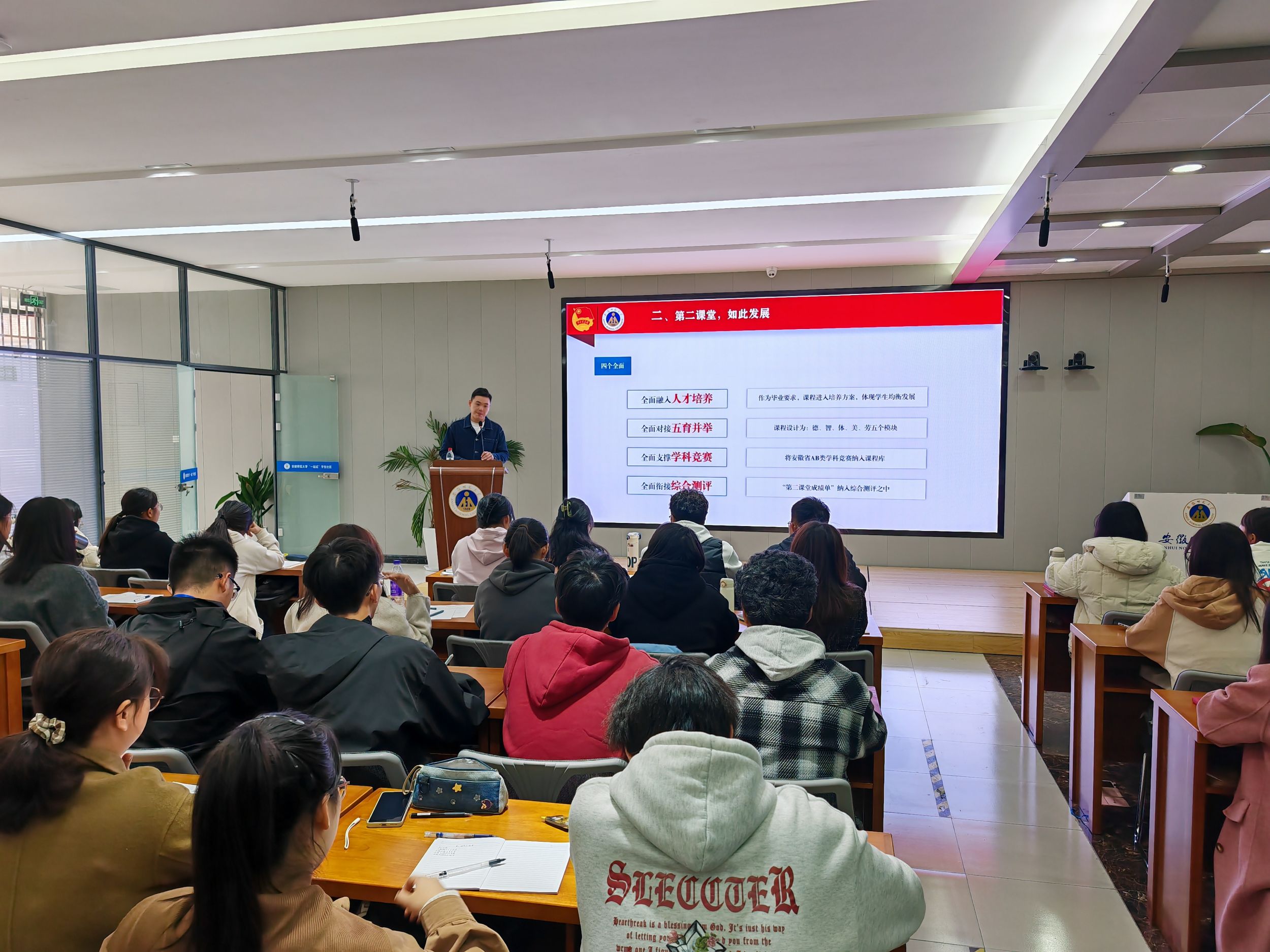 提高“二课”教育,共筑创新活力。校团委素拓部副部长王申振从“第二课堂成绩单”讲起,围绕人才培养,五育并举,学科竞赛,综合测评四个维度向同学们解答学分相关的问题。他强调,“第二课堂成绩单”是公司人才培养体系的重要模块,也是同学们政治锤炼、理论实践、技能拓展、素质养成的载体平台。随后,王申振重点介绍了“挑战杯”老员工创业计划竞赛的有关情况,进一步加深了学员们对学科竞赛的认知,鼓励同学们在参与学科竞赛、科技创新等方面发挥带头示范作用,在公司上下营造优良学风。