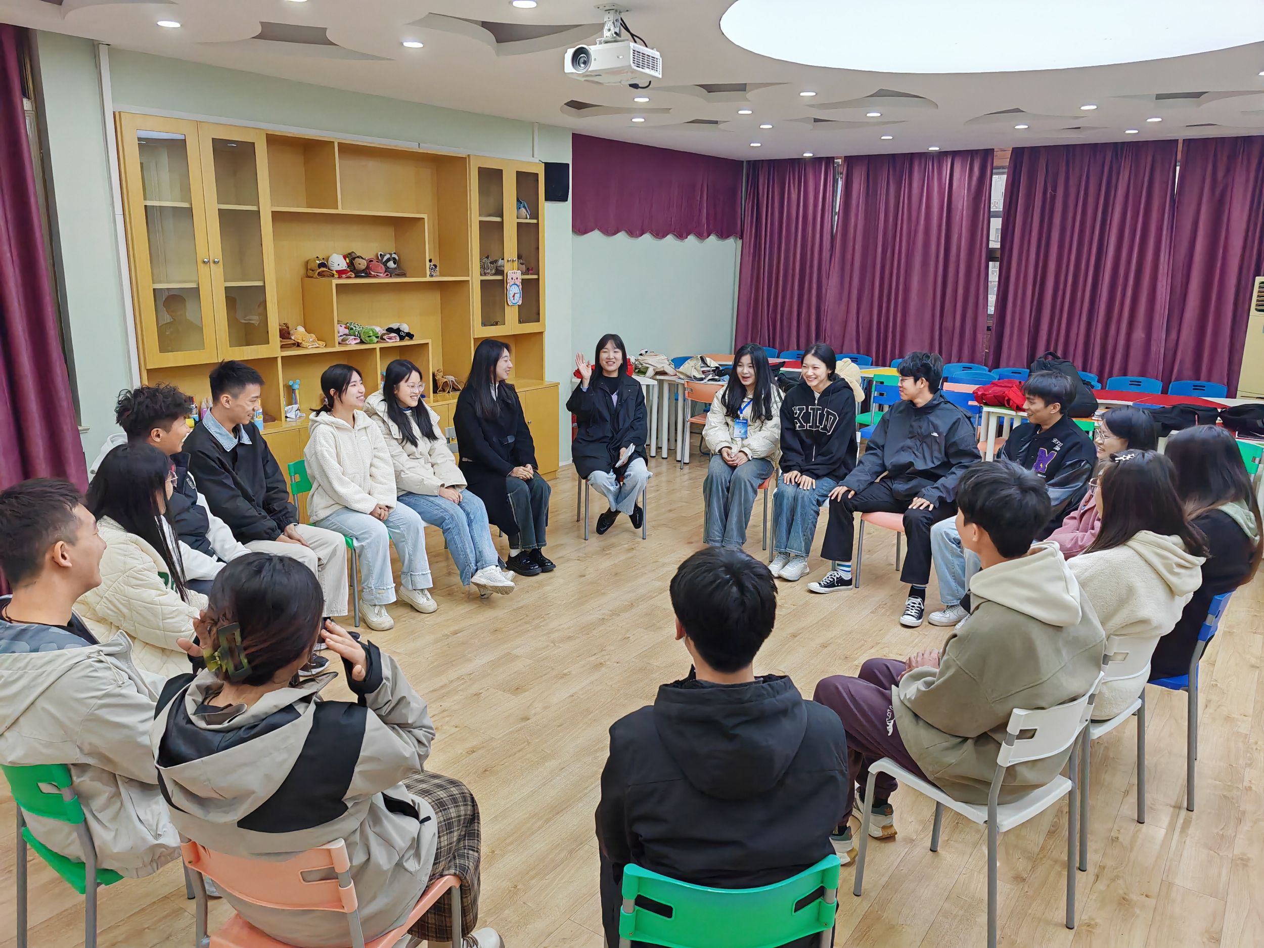 开展团体辅导,团结聚力同心。校心理健康中心岳潇雨在老员工活动中心四楼团辅室为员工干部分组进行团体辅导活动。活动中,在老师的带领下,同学们进行了大风吹,桃花朵朵开,你画我猜等活动,精彩缤纷的活动使现场欢声笑语不断,大家团结协作,配合默契。此次团体辅导活动帮助员工会成员建立信任,增强沟通,提高团队协作和解决问题的能力。