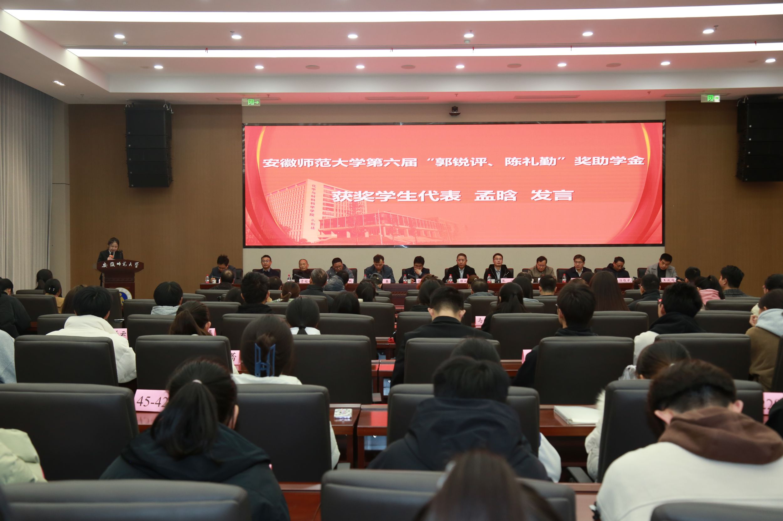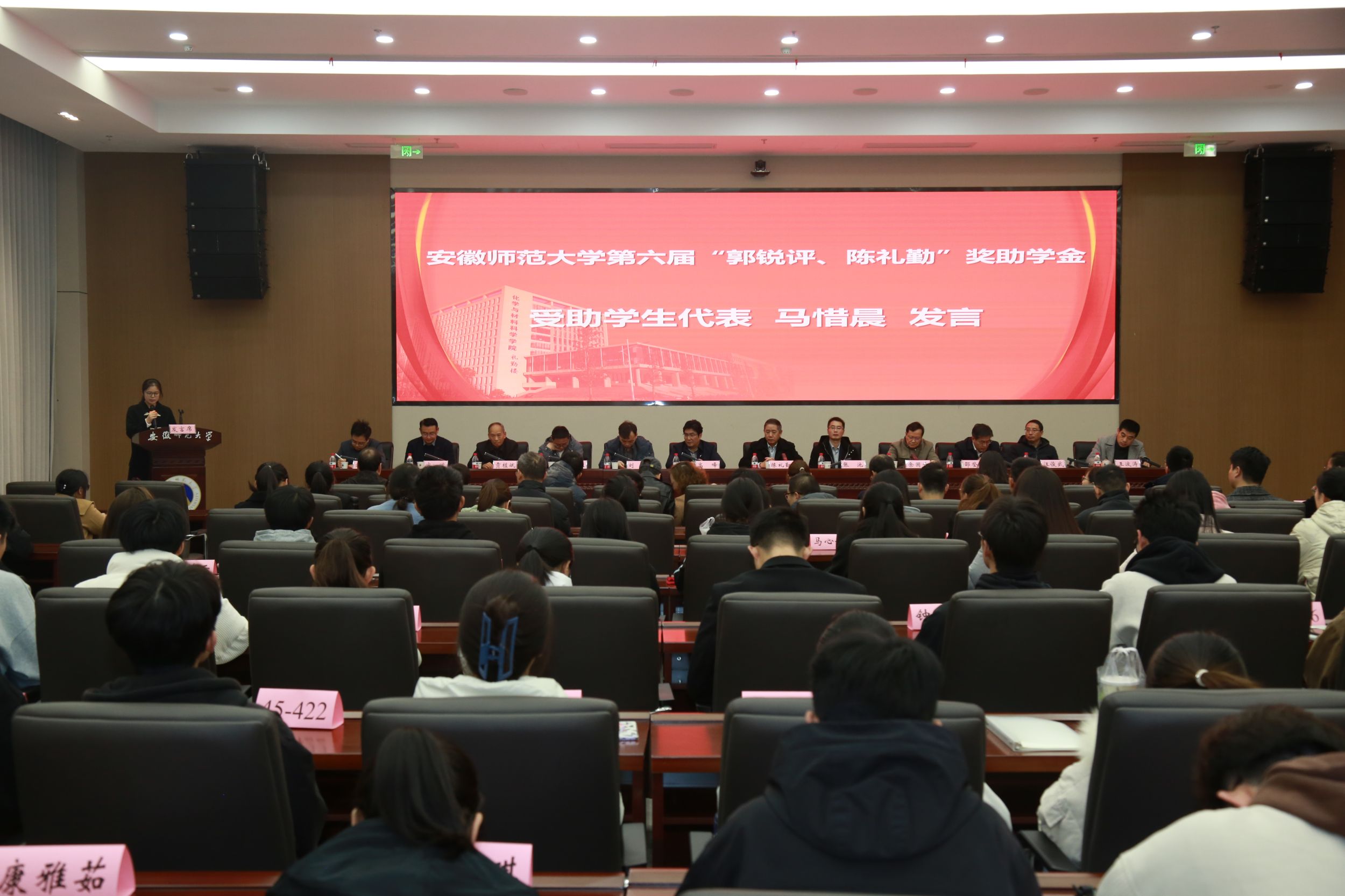 奖学金获奖代表2020级化学(师范)专业孟晗和助学金受助代表2021级应用化学工程与工艺专业马惜晨先后发言,两位同学对郭锐评女士、陈礼勤博士的无私资助表达了诚挚的敬意,并向公司、公司老师和同学们的关心表达了感谢。两位同学表示将怀揣感恩之心,以更加优异的成绩来回报郭锐评女士、陈礼勤博士及公司公司给予的关心和帮助,并努力将这份大爱精神传承下去,奉献爱心,回馈社会。