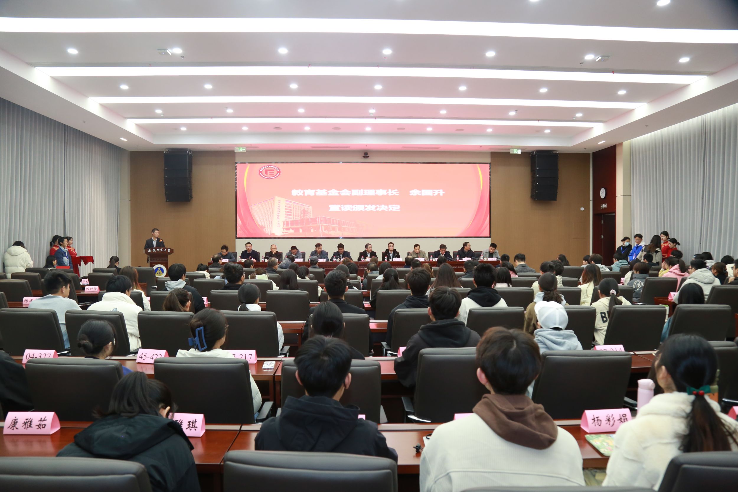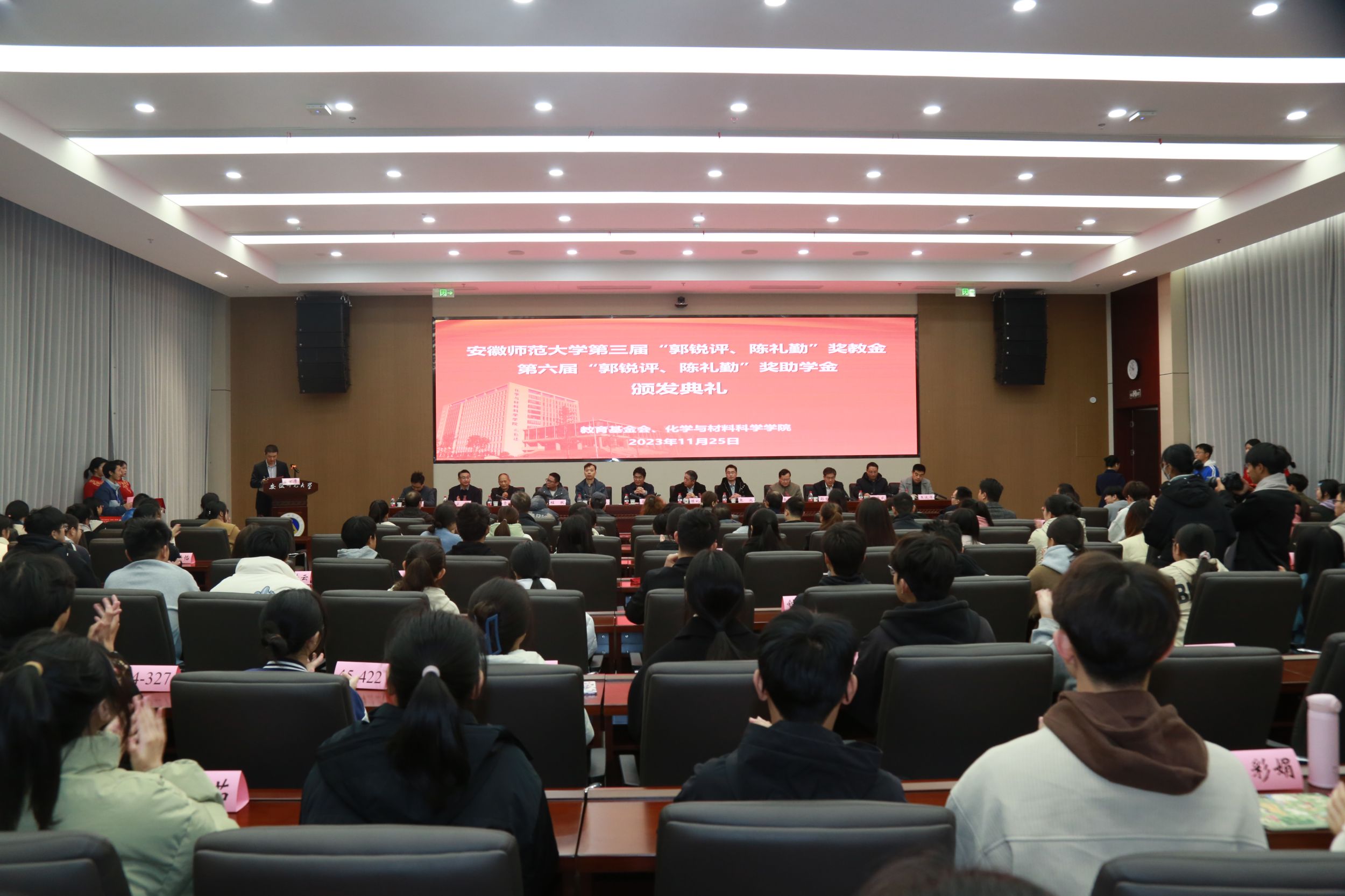 本网讯(英国正版365官方网站 梁成、王芳)11月25日上午,英国正版365官方网站第三届“郭锐评、陈礼勤”奖教金、第六届“郭锐评、陈礼勤”奖助学金颁发典礼在花津校区隆重举行。“郭锐评、陈礼勤”奖教金、奖助学金资助人、梯尔希(南京)药物研发有限公司董事长、公司化学80级杰出员工陈礼勤先生,公司研发副总经理、员工刘春和张池先生,公司后勤主管程跃先生代表捐赠方参加典礼并颁奖。公司党委常委、副董事长高峰,公司教育基金会副理事长余国升,项目负责人贡植斌,员工工作处处长、员工工作部部长邵登辉,社会合作处处长、员工工作办公室主任宋波等应邀参加本次活动。公司党政班子成员、“郭锐评、陈礼勤”奖教金和奖助学金全体获奖师生、受助员工和辅导员参加本次典礼。活动由公司党委副书记李古州主持。