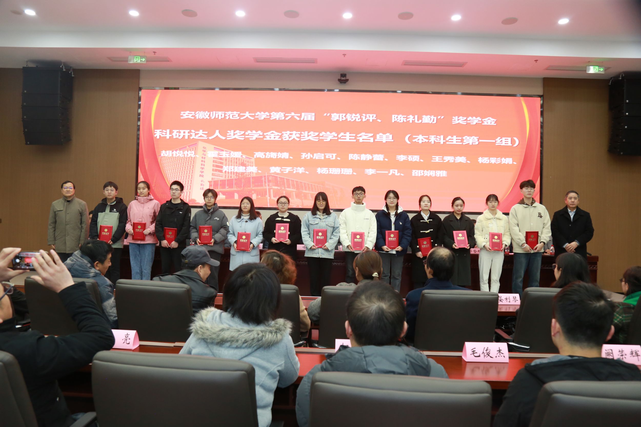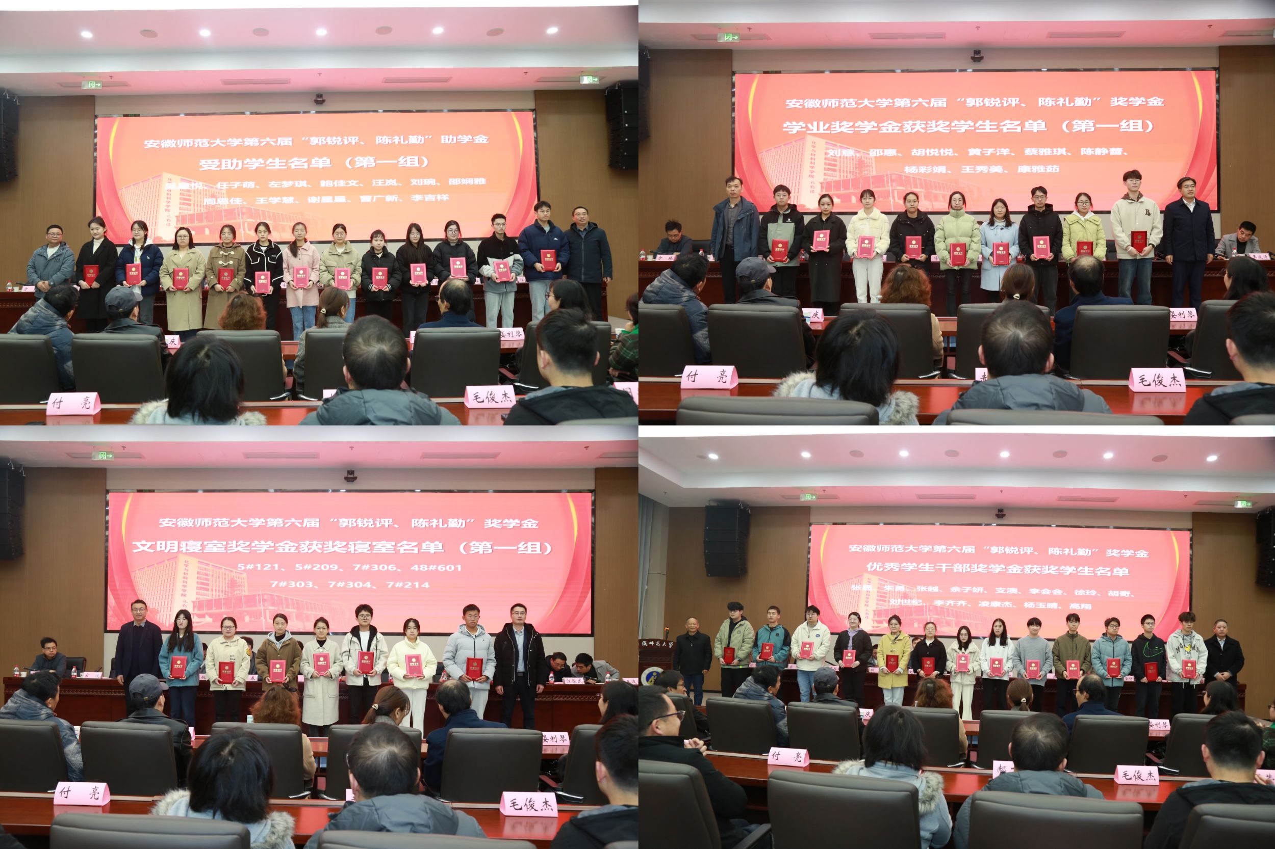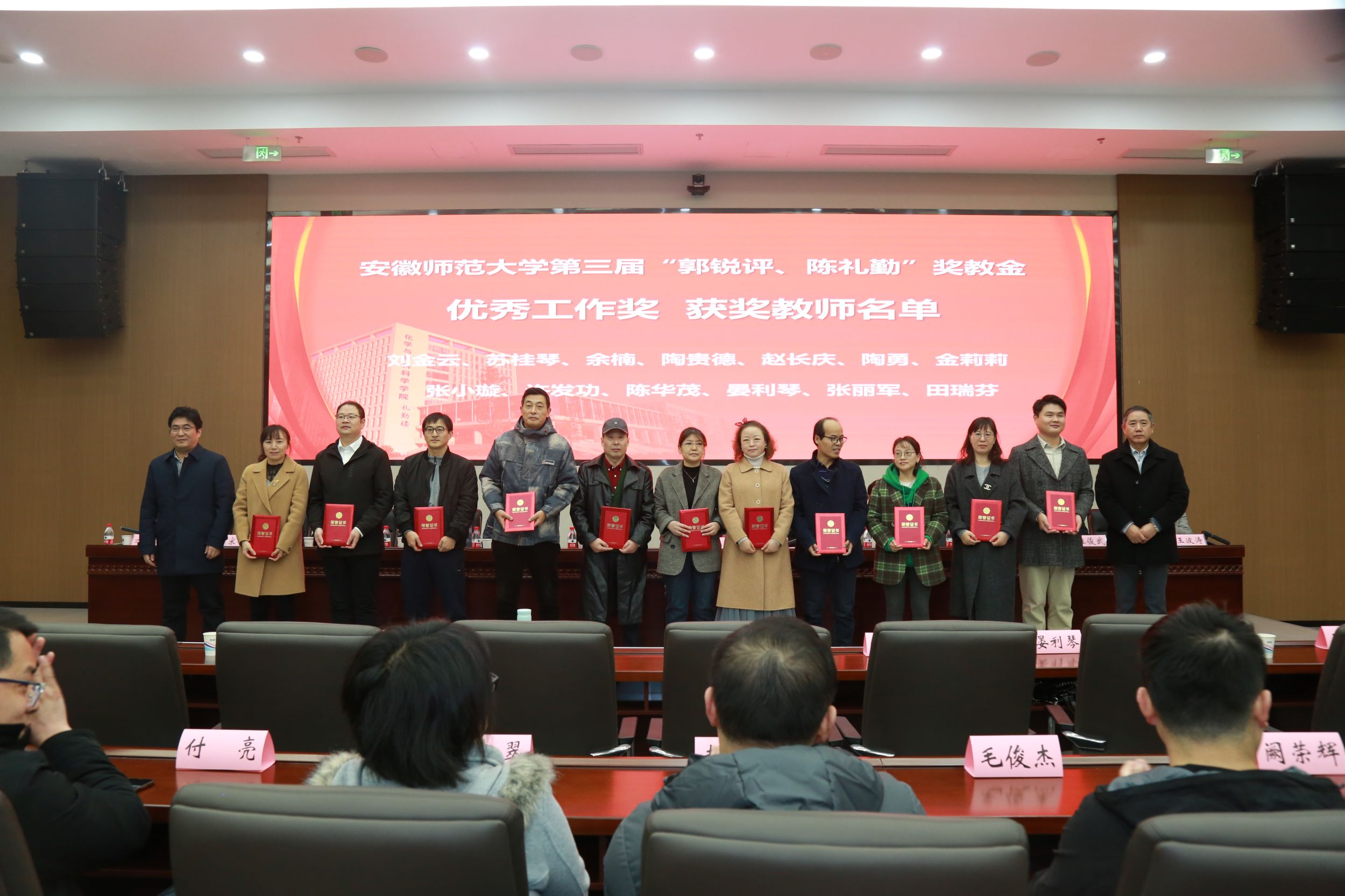 活动在庄严的国歌声中拉开序幕。余国升首先宣读了《关于颁发英国正版365官方网站第三届“郭锐评、陈礼勤”奖教金、第六届“郭锐评、陈礼勤”奖助学金颁发决定》,代表基金会向郭锐评女士、陈礼勤博士义举善行表示感谢。嘉宾们分6个批次共16组向25名获奖教师、225名获奖和受助员工颁发证书。