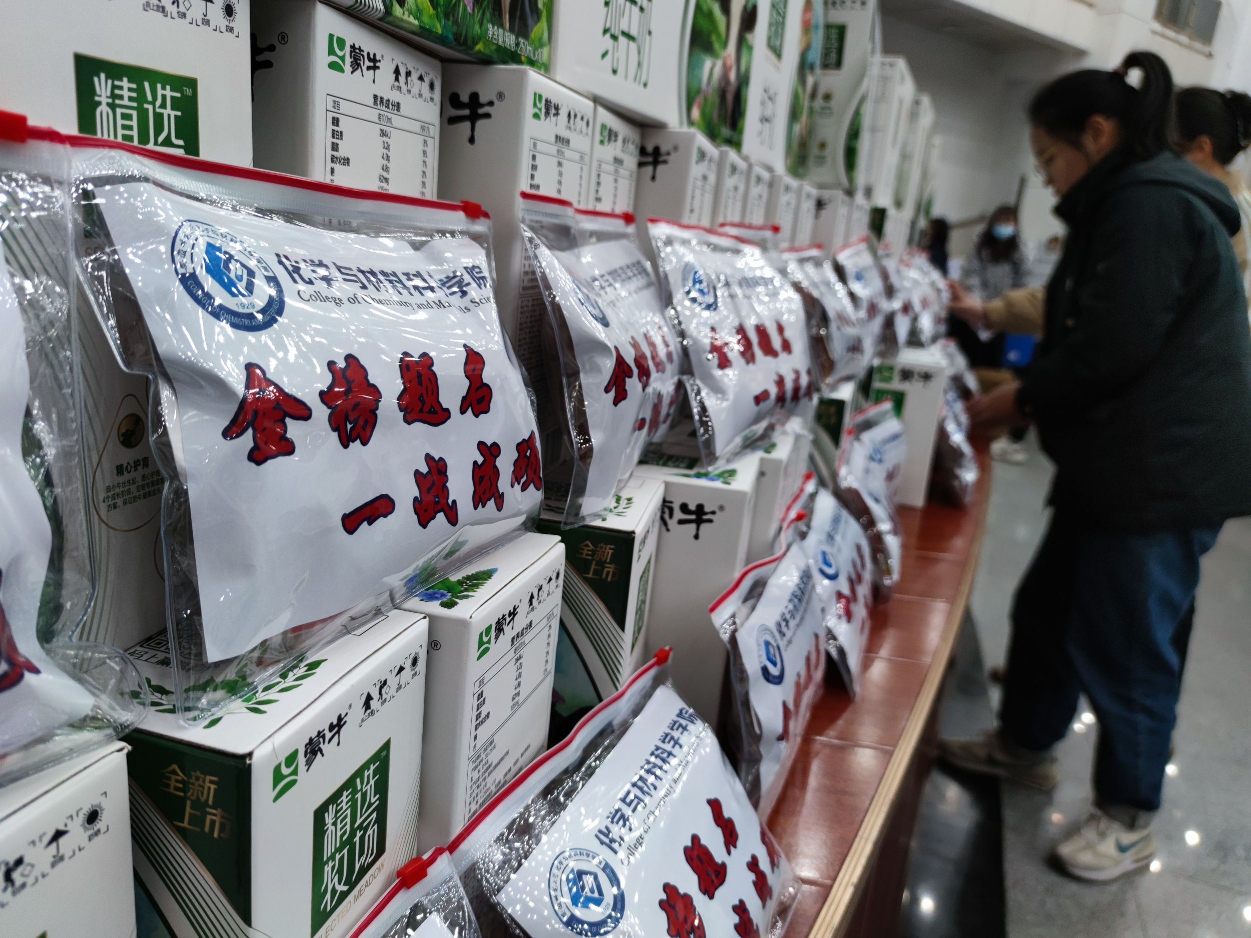 公司领导为考研员工发放“励志加油包、文具助力包、能量补给包”,“励志加油包”上的“金榜题名,一战成名”祝福同学们都能就此扬“帆”起航,心想事成,一战成硕;“文具助力包”希望同学们在考场上妙笔生花,金榜题名;“能量补给包”期待同学们暖冬心事成,幸运伴你行,“橙”功上岸