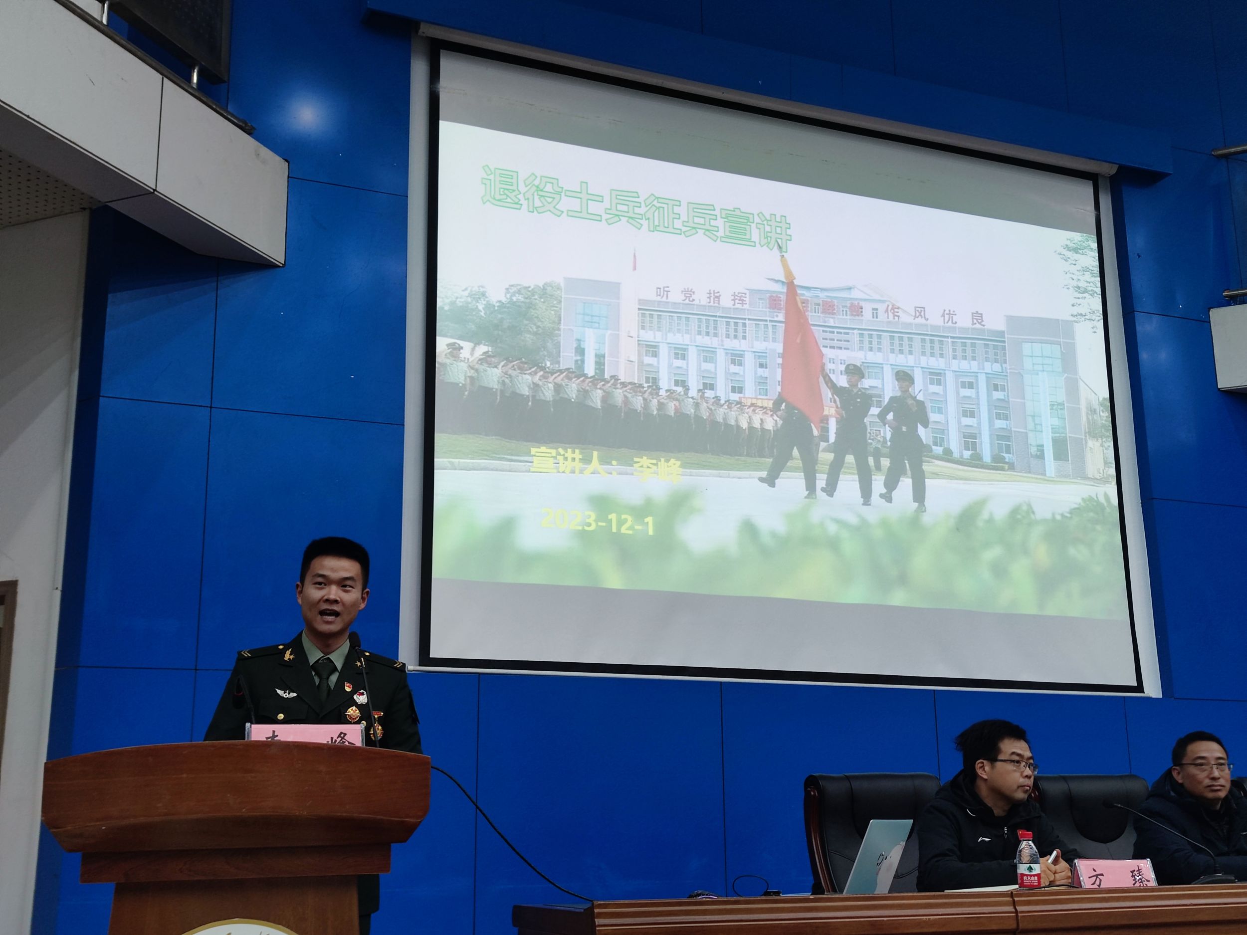 在应征入伍动员大会上,为鼓励2024届毕业班学子应征入伍,公司优秀退伍老员工代表李峰同学分享了他两年难忘的军旅生涯,介绍了应届生入伍的诸多优势和优待政策,不仅吸引在座所有同学的注意还赢得了各位领导老师的赞许。希望同学们谨记习近平总书记对应征入伍的老员工的寄语:“把热血挥洒在实现强军梦想的伟大实践之中,在军队这个大舞台上施展才华”。