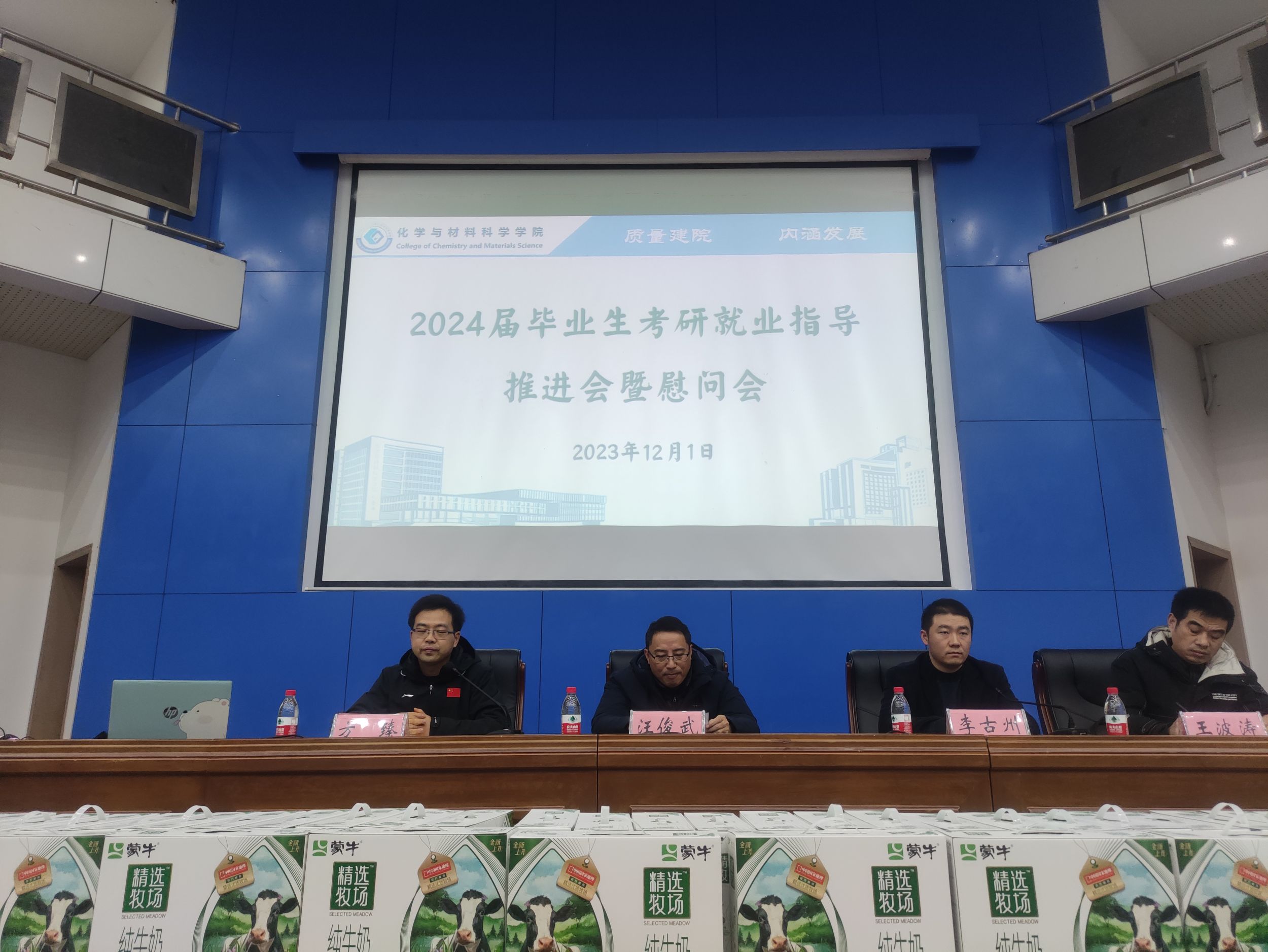 李古州分析了今年毕业生考研报考情况,希望广大考研的同学在当前冲刺的关键阶段,要强化自制力、坚持力和心理承受能力,以最佳状态应对战斗,最终突破重围,争取交上一份满意的答卷,考上理想的公司。同时,他就校园冬季安全、就业工作和征兵工作进行了强调,希望意向就业的同学积极行动,找到理想的工作,能够参军报国、实现梦想。方臻指出,考研重在坚持,要有始有终,注意调节,最后还要抓住重点。同时方经理表示:“同学们,你们尽管努力,你们的背后永远有我们为你保驾护航。”
