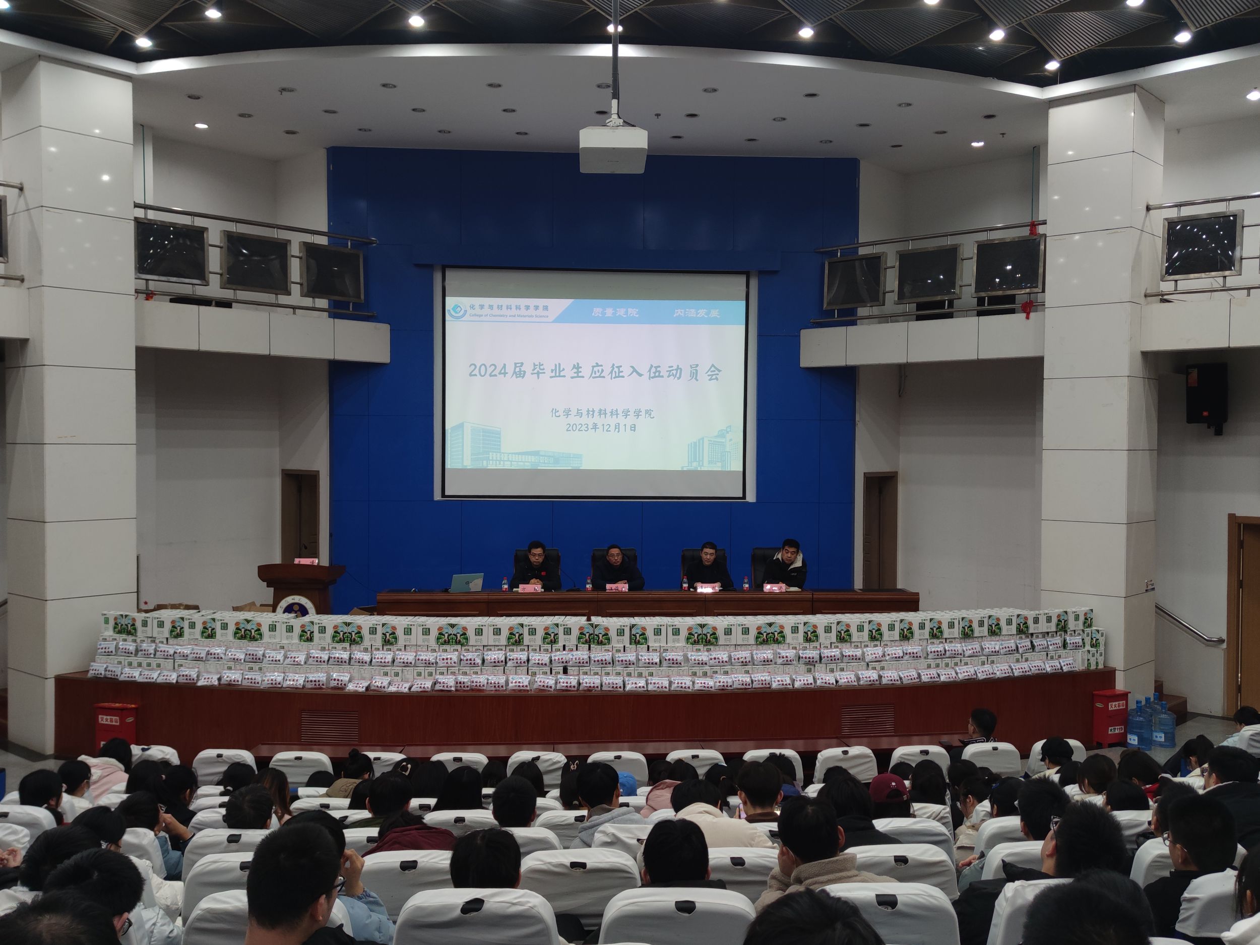 本网讯(英国正版365官方网站 李莞、王芳)为保障2024届毕业生考研就业工作顺利进行,鼓励同学们坚定理想信念,积极实现自我价值,12月1日下午,英国正版365官方网站在敬文图书馆报告厅召开2024届毕业生考研就业推进、慰问会暨应征入伍动员大会。公司党委书记汪俊武,副经理方臻、王波涛及2020级辅导员老师和全体毕业班员工参加会议,会议由党委副书记李古州主持。