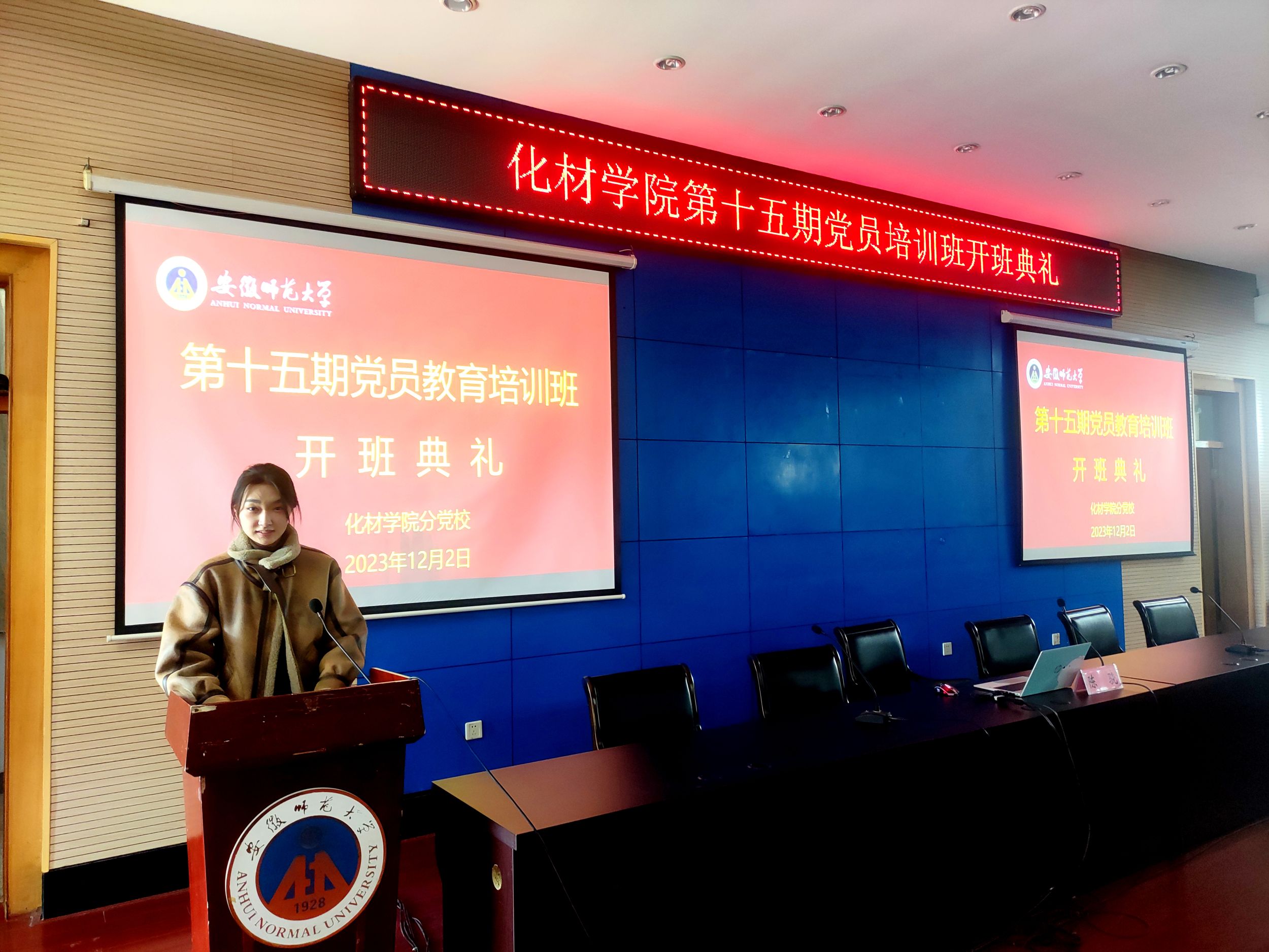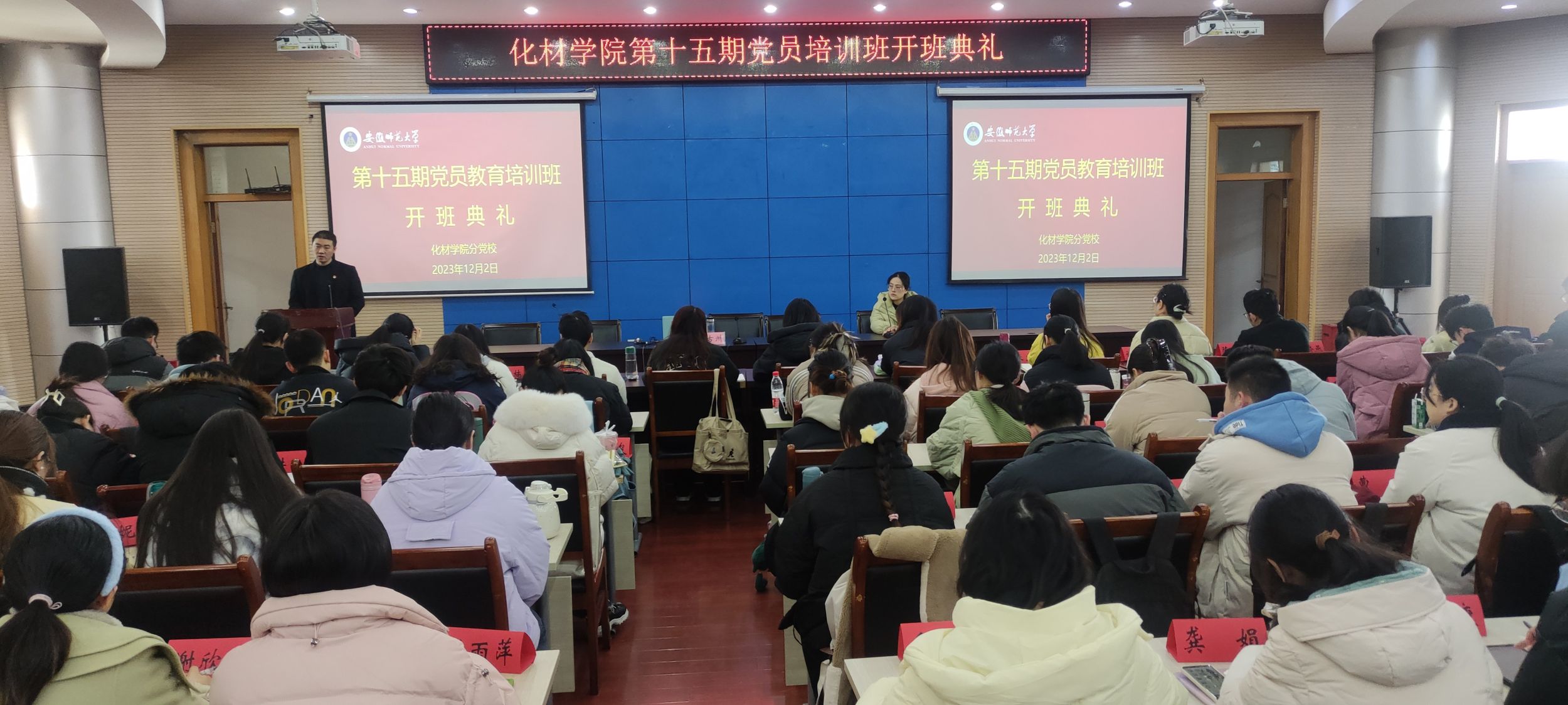 12月2日上午,开班典礼在国歌声中拉开帷幕,班主任王芳介绍本次培训班的基本情况、班委组成及班级管理制度。2020级化学师范专业李昱璇同学作为党员代表发言,她表示要强化身份意识,严格履职尽责,发挥先锋作用。公司党委副书记李古州指出,希望在座的党员要深刻认识开展党的二十大精神学习培训的重要意义;要明确目标,努力提高培训效果;要严格要求,圆满完成本次培训学习任务。