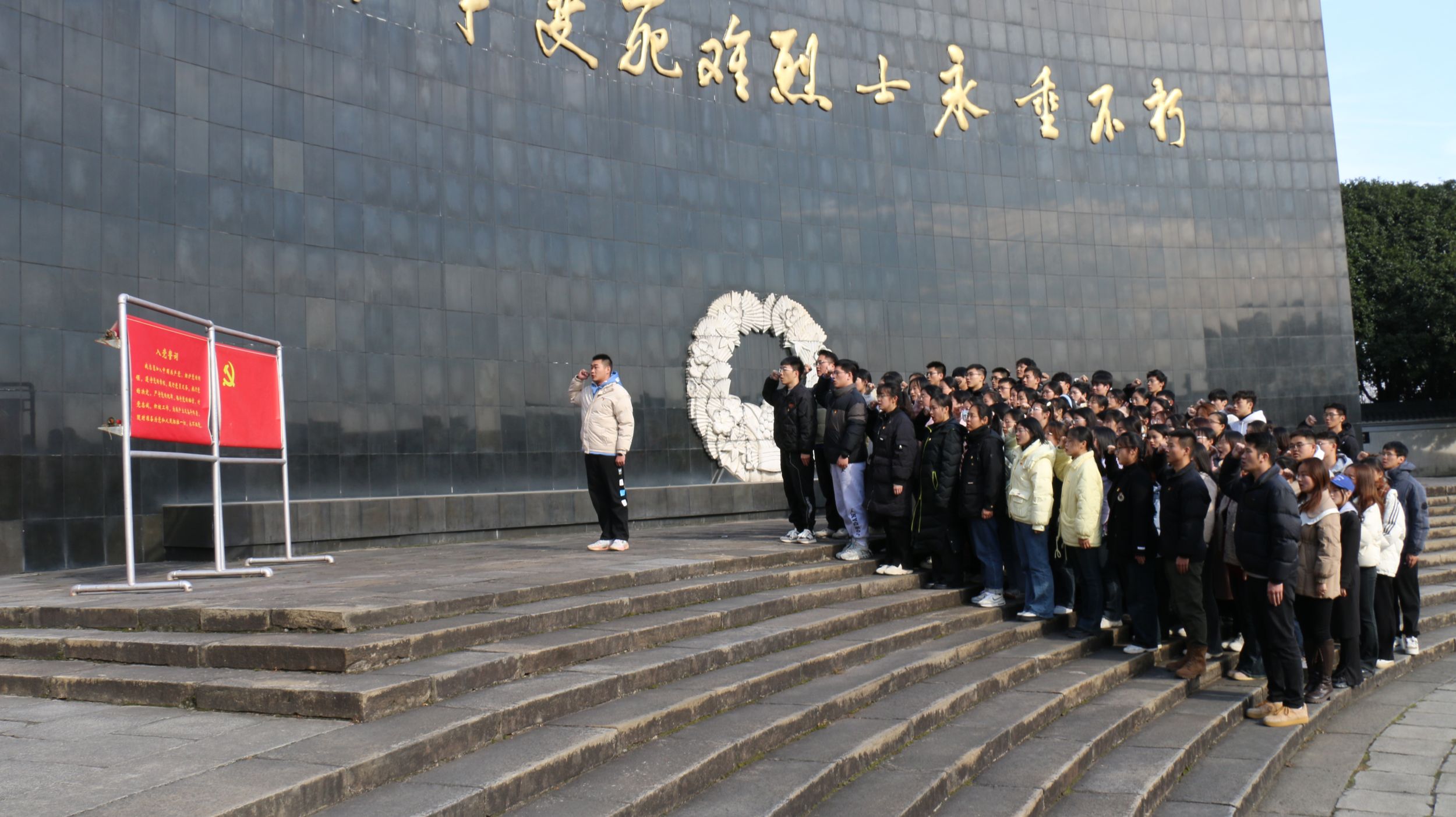 实地研学,强化党性锻炼。12月3日,公司组织培训班全体公司和员工党支部书记前往安徽宣城泾县开展实践活动,集体参观了新四军军部旧址和皖南事变烈士陵园,悉心“拜读”了这些记录着中国共产党及其人民军队丰功伟绩的立体史书,深刻感受到新四军在艰苦环境下坚持革命斗争的英雄气概。烈士陵园的每一处建筑都具有象征性的意义,一砖一瓦都有着深刻的寓意同时也寄托着后人对革命先辈的哀思。全体党员同志参观游览了烈士陵园纪念廊和无名烈士墓后,集合在烈士陵园纪念广场中央,进献花圈,鞠躬缅怀。在员工党员陈功洋的引领下,全体党员面对鲜红的党旗庄严宣誓,开展新发展党员集体入党宣誓活动。