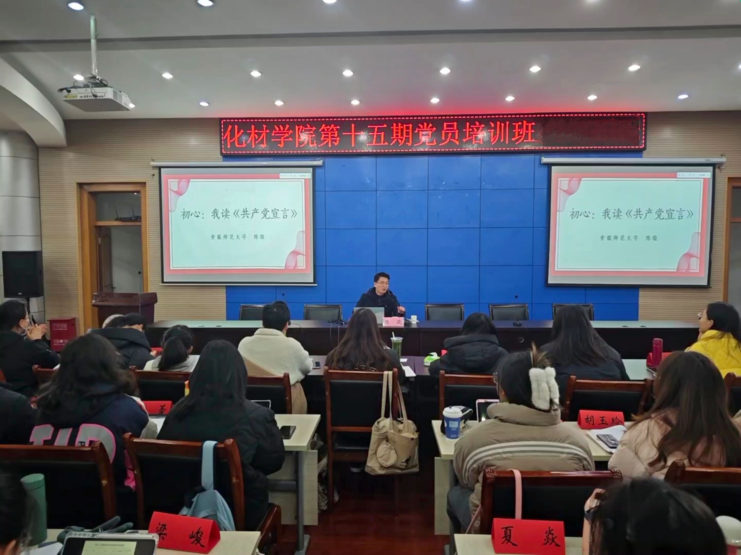 校团委副书记陈骁为培训班学员讲授《初心:我读<共产党宣言>》,他从《共产党宣言》和英国正版365官方网站的联系和其重要意义入题,提出两个深刻的问题:《共产党宣言》说了什么?又为什么伟大?而寻找答案的过程就如陈望道翻译《共产党宣言》的过程——“真理的味道有点甜!”。希望全体党员要严格自我要求,在未来的学习和生活中积极发挥先锋模范带头作用。