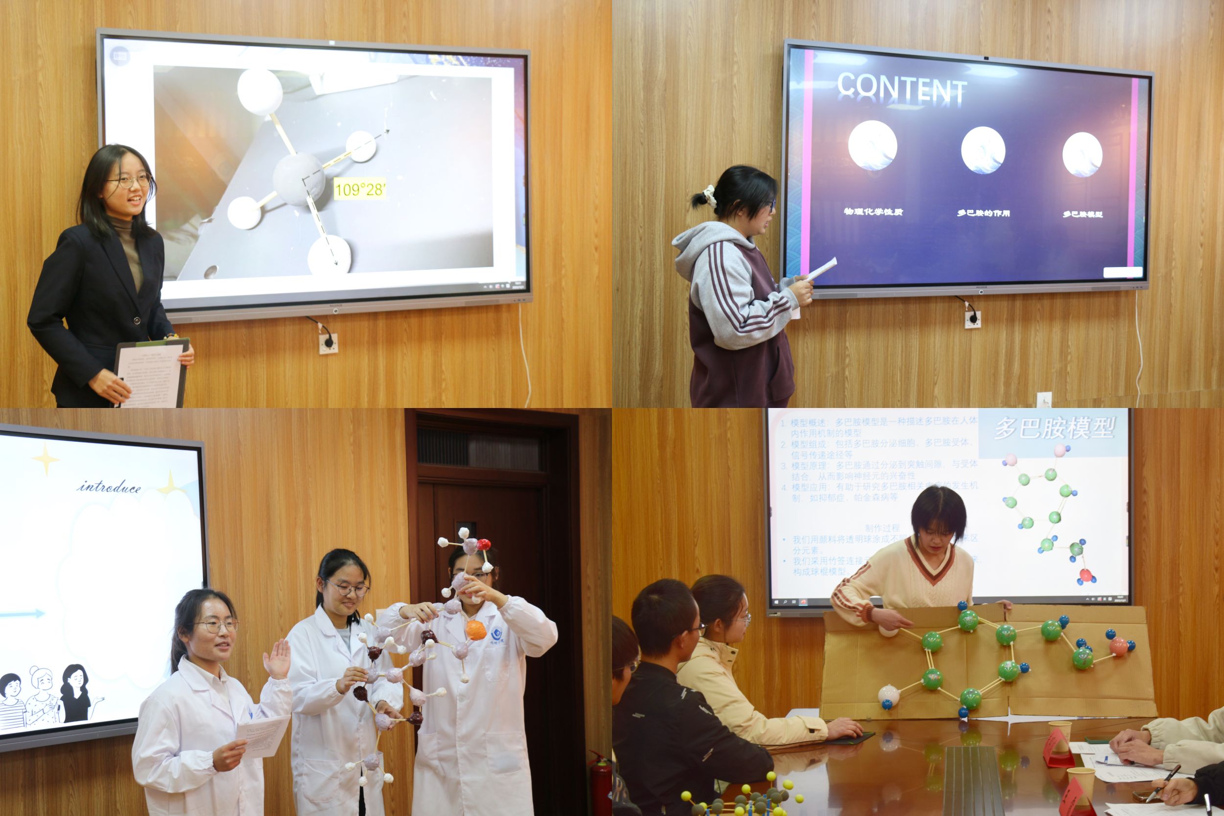 经前期自主申报、材料审核、班级选拔,共有七支队伍进入决赛。汇报现场,各支队伍提供了丰富的汇报材料和支撑材料,采用PPT汇报与实际模型解说相结合的的形式,详细介绍了团队分子模型的由来和意义,并运用所学知识现场进行组装制作。在动手组建模型的过程中,选手充分理解物质的结构特点,明确有机物结构是分析其性质的重要依据。汇报内容全面真实、准确充分;模型结构完整、链接牢固、符合原理;汇报者语言规范、组织流畅。在紧张而激烈的比赛过程中,同学们充分发挥想象力和创造力,生动展现了化学学科的独特魅力,参赛选手现场的精彩表现赢得了评委的一致好评。