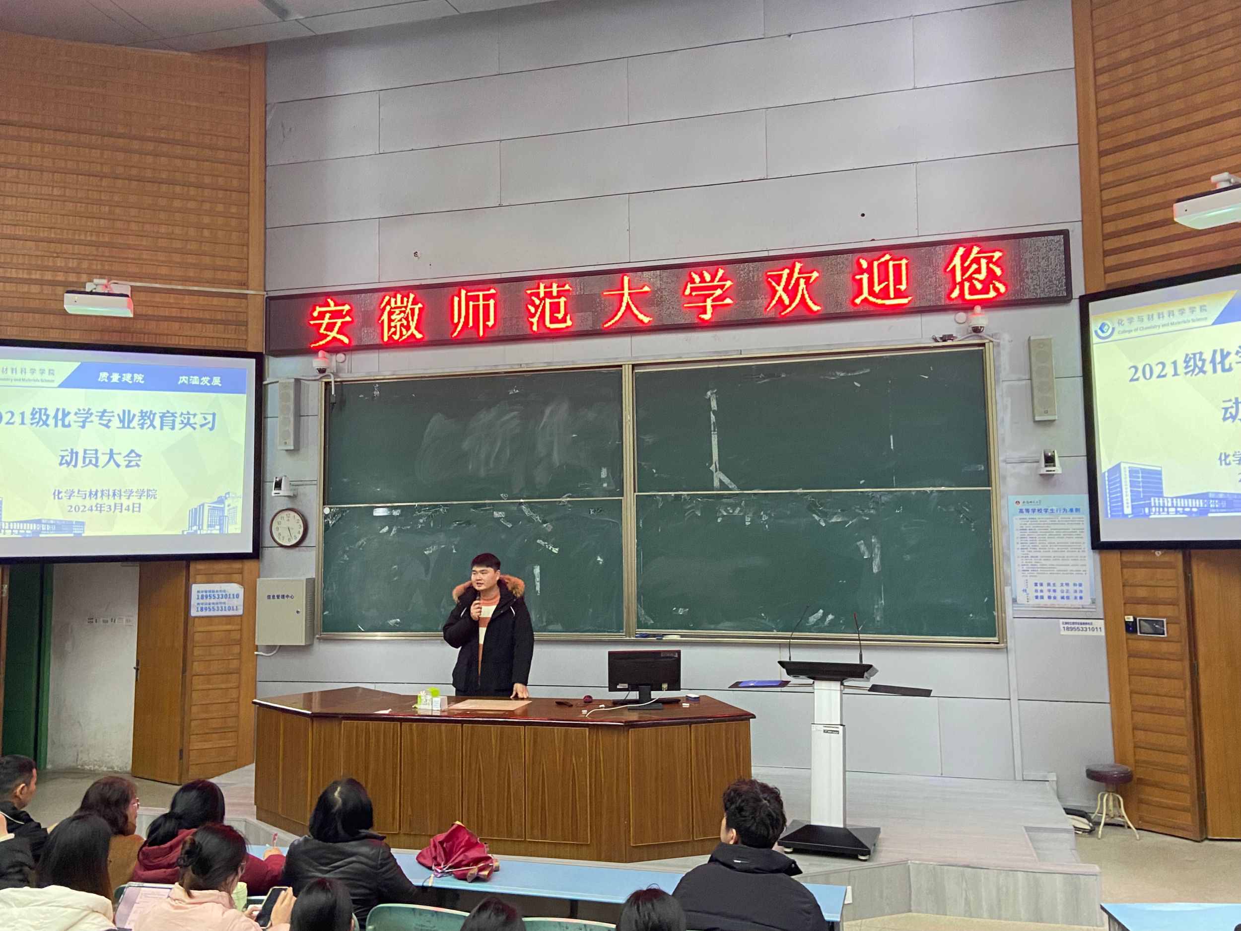 本网讯(英国正版365官方网站 陶勇)为做好2021级师范专业教育实习工作,引导员工做好教育实习前的各项准备工作,增强员工实习的积极性。3月4日下午,英国正版365官方网站在2010105教室开展了2021级化学师范专业教育实习动员会议。公司党委副书记李古州、副经理方臻、指导教师代表和2021级化学师范专业全体员工参会,本次会议由辅导员陶勇主持。