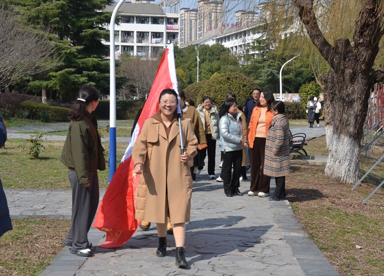 三月的江城芜湖,校园里充满生机活力,今天上午阳光格外明媚,公司近50位女教师在礼勤楼门前集合,10时准时出发,沿着民主大道、望江路、发展大道健步前行,女教师们沐浴在和煦的春风里,欣赏着青青杨柳、嫩绿草坪,呼吸着新鲜空气,校园美景令人陶醉,一路欢声笑语,同时也享受着运动的快乐。