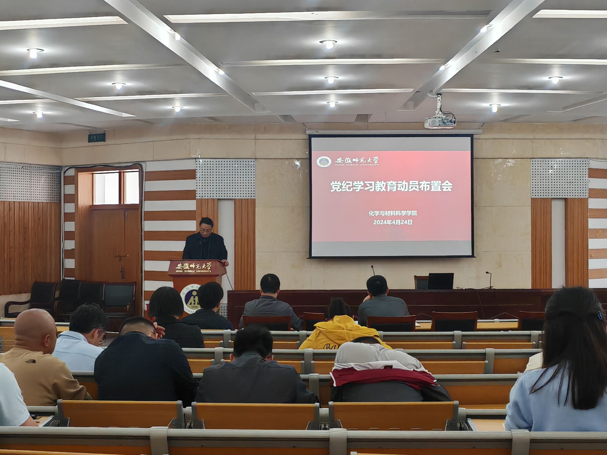 4月24日下午,化材院召开教职工大会专题学习习近平总书记关于党纪学习教育的重要讲话和重要指示精神,动员部署公司党纪学习教育工作,全体教职工参加会议。会议由公司党委书记汪俊武主持。