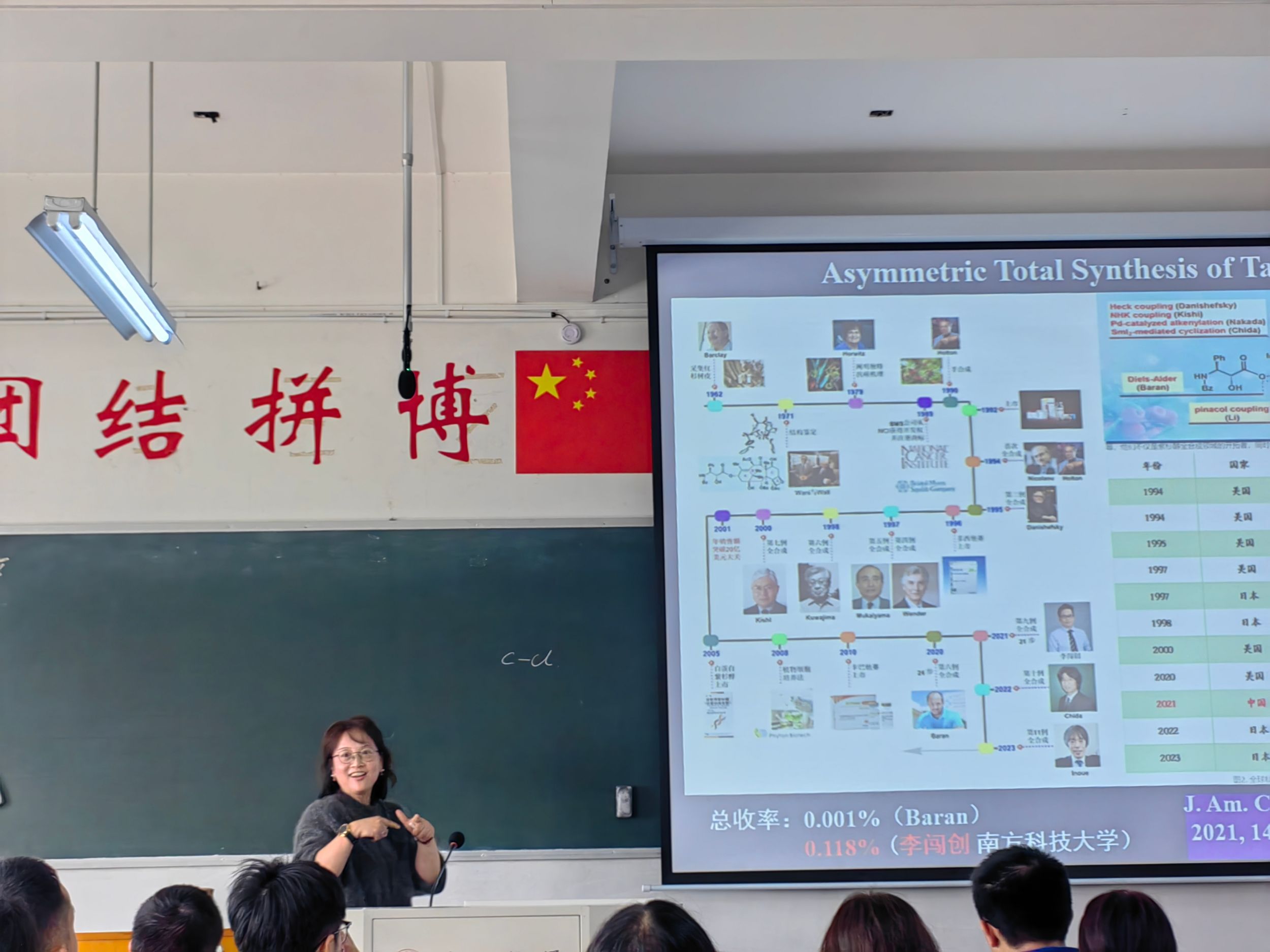 张丽军副教授用深入浅出的讲解、生动形象的描述、清晰严密的逻辑向在座的老师和员工们做了“醇、酚、醚”章节的教学示范。张老师首先回顾了上节课的教学内容,引出含氧官能团的化合物,进而导出本次课程的内容。在教学过程中,以抗癌药紫杉醇的发现与全合成的发展脉络为例,向老师同学们介绍了含氧化合物的重要性。特别是通过对历史事件的介绍,让同学们了解了国家自然资源保护的重要性。通过列举我国优秀青年科学家李闯创教授在紫杉醇全合成方面的杰出贡献的案例,深深感染了课堂老师员工们,激发了同学们努力学习自然科学知识、为祖国科学事业作贡献的斗志。随后,张老师深入浅出的对醇酚等化合物的结构以及物理化学性质进行了详细的讲解。讲解过程条理清晰,层层推进,破解难点。不断设问,引导学习,课堂氛围活跃,员工紧跟教师思路,感受有机化学的魅力。