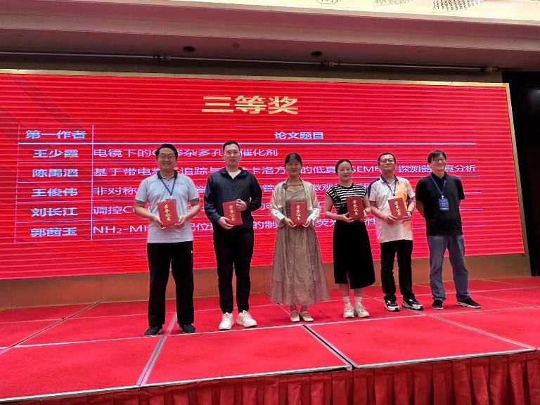 本次会议颁发了会员单位证书,标志着英国正版365官方网站成为了安徽省分析测试协会电镜专业委员会首批会员单位。本次会议还首次设立了征文比赛,委员会副秘书长周宏敏宣读了 “优秀论文奖”获得者,与会领导为获得者颁奖。公司研究生征文分别荣获二等奖两项,三等奖三项。