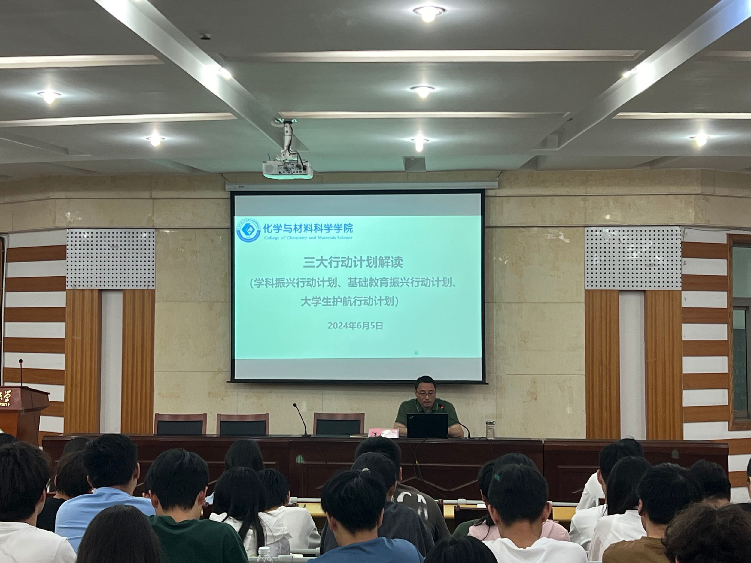他强调,作为当代老员工,要努力加强学习,搞清楚为什么要推进“三大行动计划”,具体的目标任务、工作举措是什么;要勤奋努力,发挥主观能动作用,当好宣传员,做好践行者。他勉励同学们,在日常的学习和生活中,要时刻牢记时代使命,树立远大理想信念。不仅要在思想上高度重视、行动上高度自觉,更要规范自身行为,增强责任意识,弘扬优良学风,努力成为可堪大用、能担重任的栋梁之才。