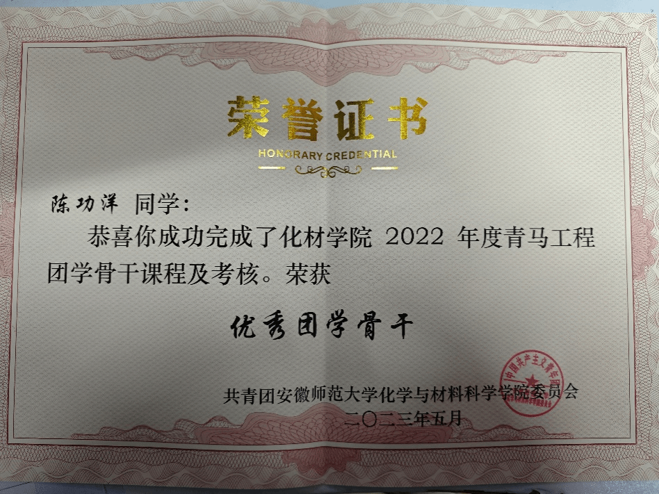 作为青年员工,他始终以饱满的学习热情和端正的学习态度对待专业学习,认真上好每一节专业课,做到课前预习和课后复习,并认真做好笔记,积极与任课教师讨论问题。大学期间期间,他荣获两次校级三等奖学金、一次校级二等奖学金、“优秀员工干部”荣誉称号。此外,他在大二学年便注重创新意识和创新能力的培养,在认真做好本科生实验课程的同时,参加老员工创新创业训练计划省级立项项目,培养创新能力;还积极主动地跟随毕设导师深深扎根于实验室中探索新的化学合成方法,为研究生阶段的学习打好基础。