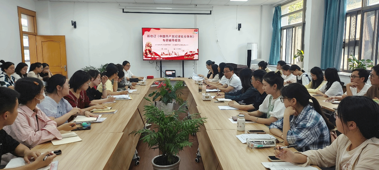汪俊武根据新修订的《中国共产党纪律处分条例》作专题辅导报告,汪书记理论结合实际,用浅显易懂的语言从《条例》的重要意义、主旨要义和如何贯彻执行三个方面讲授了意义深刻而又生动有趣的报告,他勉励支部党员要始终坚持严的基调,不断完善纪律规矩,以严明的纪律推进党的自我革命,员工党员无论是在校期间还是步入工作岗位都要切实学纪、知纪、明纪、守纪,推进党的自我革命永远在路上。