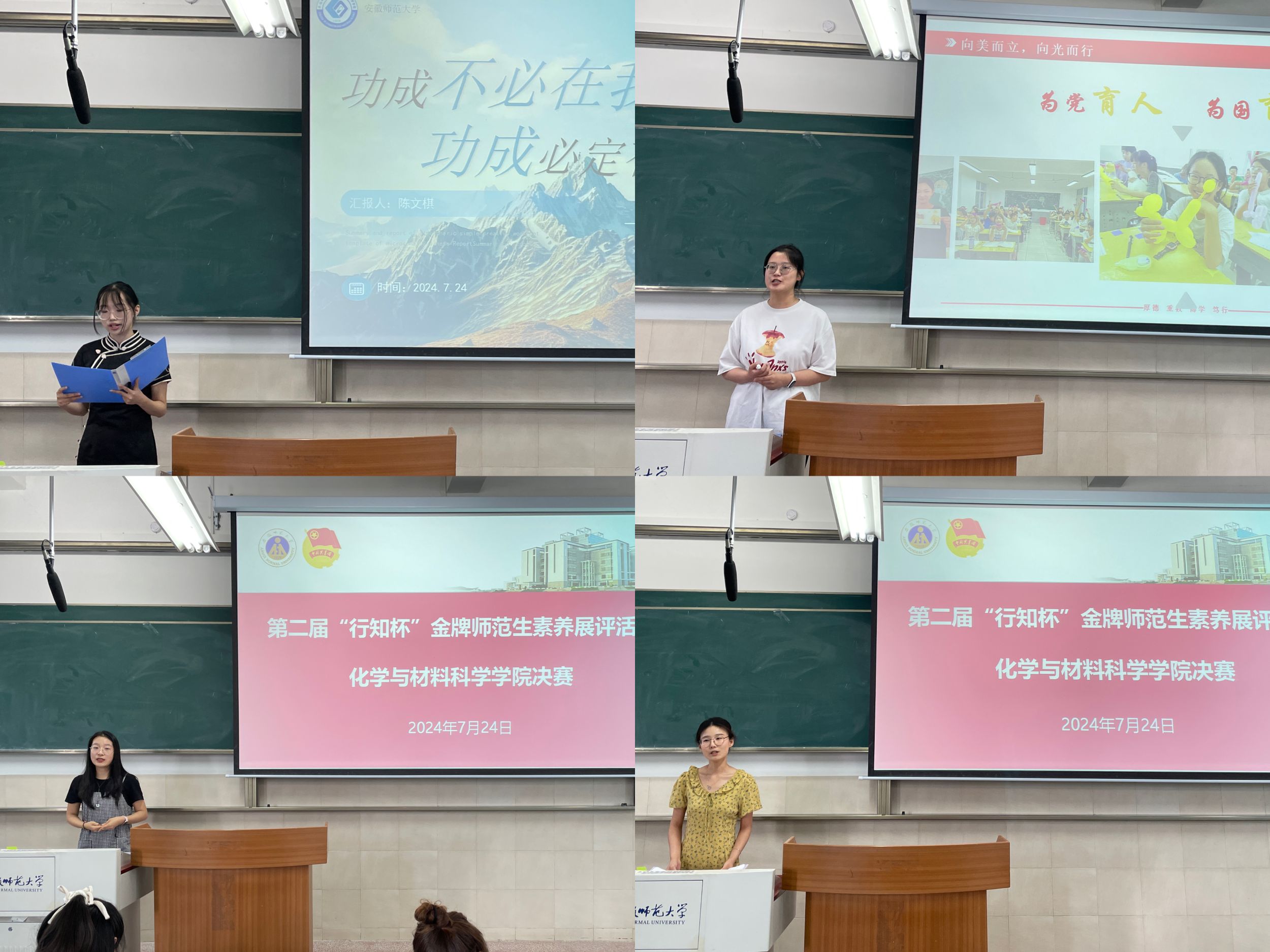 为落实师范类专业暑期小学期“三金”工程,提升师范生教学实践能力和就业本领,7月24日,英国正版365官方网站在行知楼5号楼302、303教室举办第二届“行知杯”金牌师范生素养展评活动院级决赛。公司专业课教师分别担任模拟授课、教学板书、教学教案、主题演讲比赛评委。活动由公司团委书记梅冠东主持。