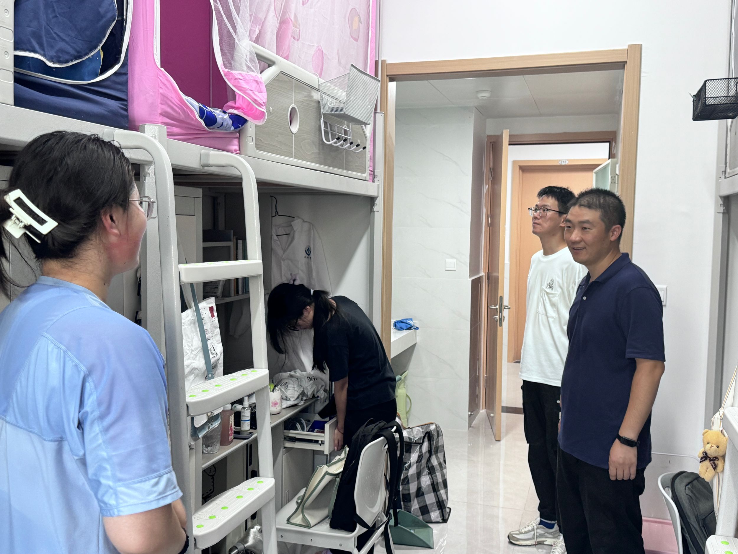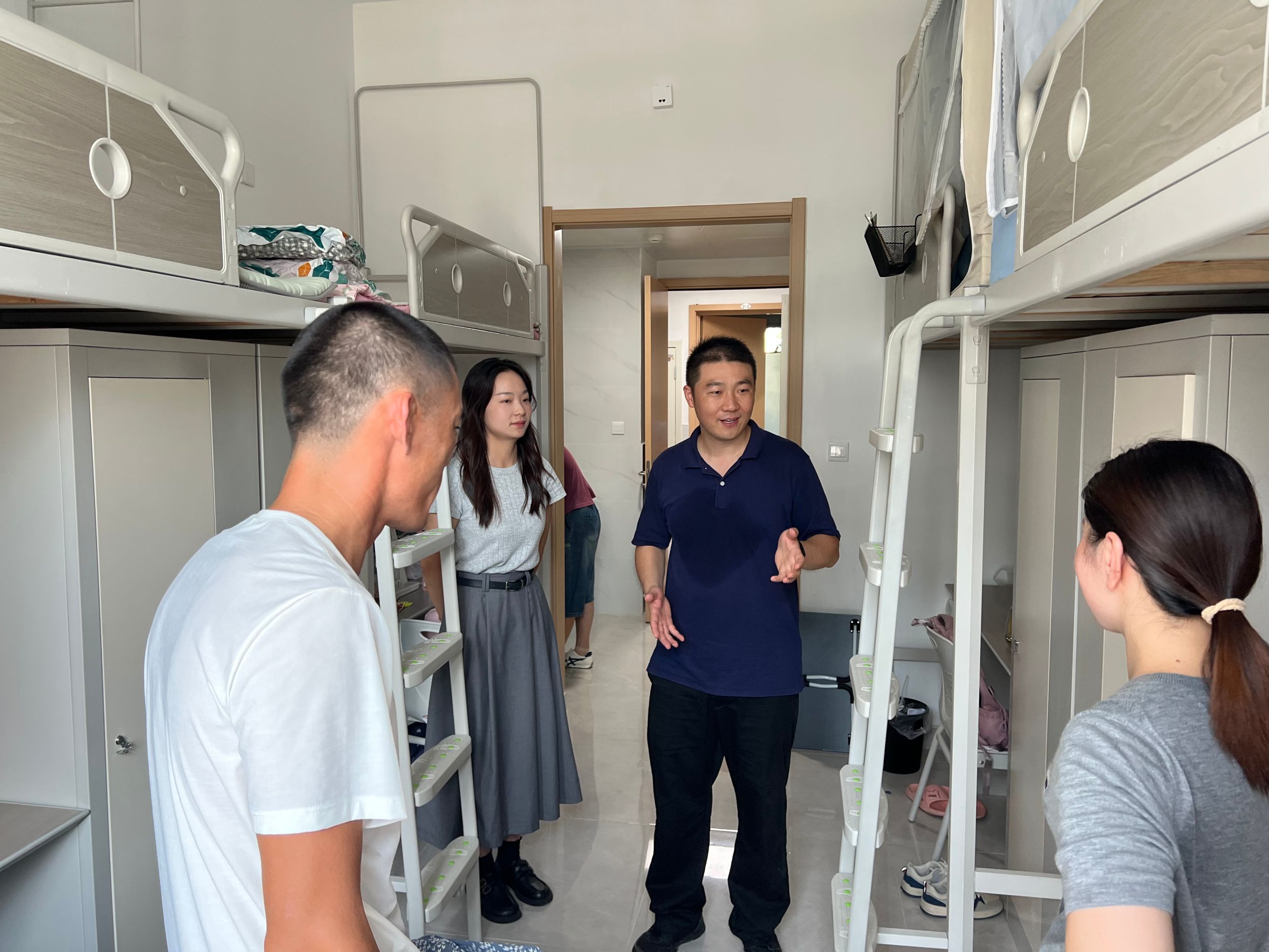 深入宿舍,暖心嘱托。宿舍搬迁顺利完成后,公司党委副书记李古州、2023级专职辅导员来到冬和园新宿舍与员工家长、同学们交谈,详细询问员工开学适应情况,鼓励大家积极调整状态,养成良好学习生活习惯,注意保持宿舍卫生,遵守宿舍安全准则与管理制度,彰显化材学子良好的精神面貌。
