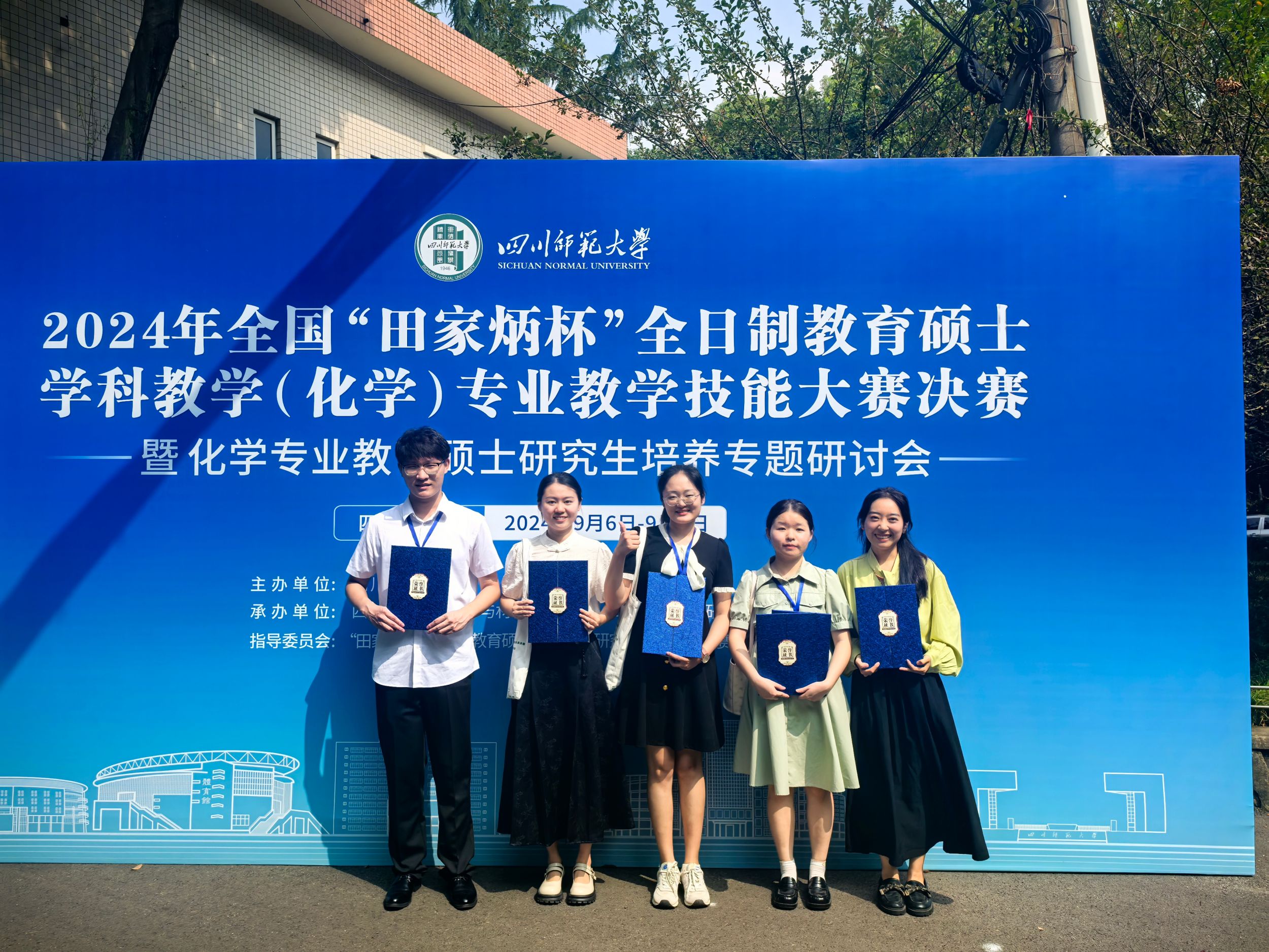 9月6日至8日,2024年全国“田家炳杯”全日制教育硕士专业学位研究生学科教学(化学)专业教学技能大赛决赛在四川师范大学顺利举行。本次大赛共有来自北京师范大学、华东师范大学、华中师范大学等国内81所公司、198名选手参加决赛。经过现场抽题,教学设计、多媒体课件制作、即席演讲、有生模拟授课等环节的激烈角逐,英国正版365官方网站2022级学科教学(化学)专业研究生李涵琪荣获一等奖,田一鸣、李一凡、谭燕利、黄淑雯荣获二等奖,孙影、周冬冬、程瑶琴、张四方四位老师获得优秀指导教师奖,创历史最好成绩。