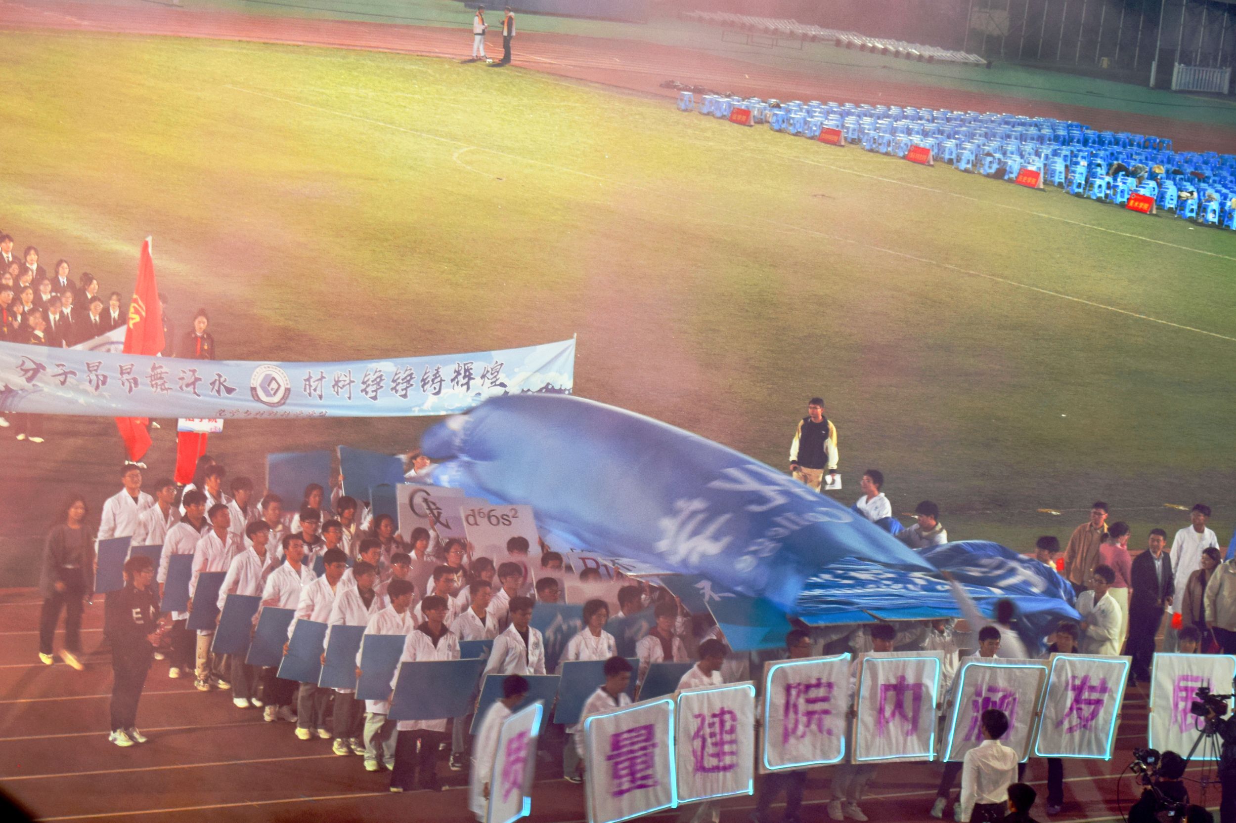 舞动诗篇,创意展示。10月23日晚校运动会开幕式上,步伐整齐有力的方阵队,伴着响亮的口号入场。英国正版365官方网站方阵以爱心为背景向中华人民共和国成立75周年献礼,他们以“化韵飞扬,青春激昂,材力非凡,共创辉煌”为口号,借用“化学元素”展示着“锇钔钌钚锝(我们了不得)”的豪情壮言。碱遇酚酞溶液变红的原理被巧妙地运用于喷画展示,八位同学各举一字,“质量建院、内涵发展”院训在灯带的映衬下,熠熠生辉。