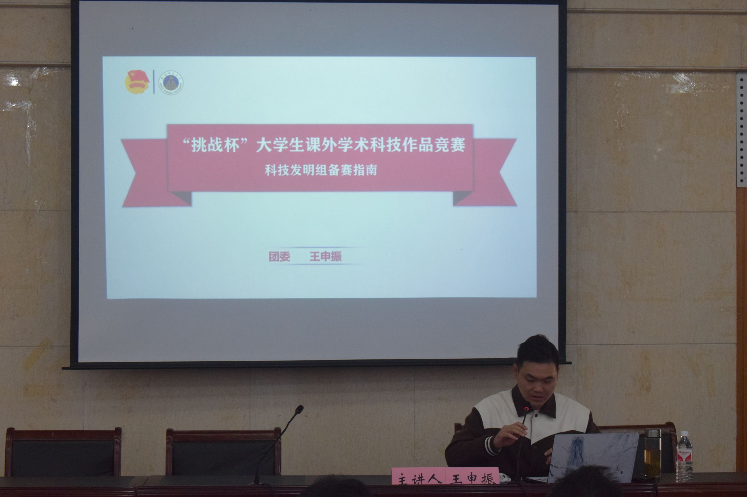 校团委素质拓展部王申振老师就“挑战杯”老员工课外学术科技作品竞赛(科技发明组)为同学们带来了详细的参赛指导。王申振首先介绍挑战杯在培养员工创新能力和实践能力方面的重要意义,之后以如何选题,如何撰写研究报告,如何制作PPT三个方面介绍竞赛注意事项。他着重强调了团队建设的重要性,鼓励同学们在组队时充分考虑成员的专业背景、技能特长等因素,打造一支优势互补的团队。最后,以“挑战挑战,突破自我”结尾,表达了对化材学子的期望。