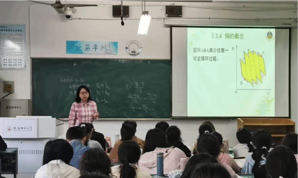 “熵变公式中的等号,是科学家毕生追求的理想国度;而教育者的使命,是在‘大于号’的现实中给员工们播种希望。”吴正翠老师轻抚黑板上的“△S≥0”,将热力学第二定律升华为育人哲学。吴正翠老师以“熵增不可逆”类比成长规律,时间如白驹过隙,一去不返。课堂中,从熵变的微观解释到为人的处事准则,从科学史话升华到人生价值,吴正翠老师以多维度视角,让专业课堂成为培养家国情怀、科学精神的沃土。