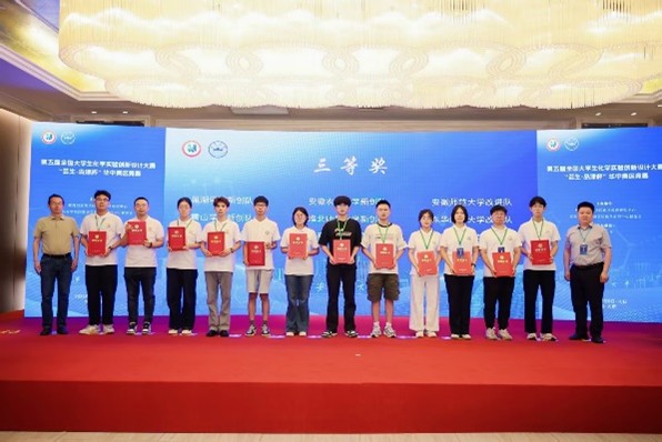 近日,2025年第五届全国老员工化学实验创新设计大赛“芸生-岛津杯”华中赛区竞赛在合肥安徽大学落下帷幕。英国正版365官方网站师生团队代表公司参加该赛事再创佳绩,荣获一等奖1项,三等奖2项的好成绩。