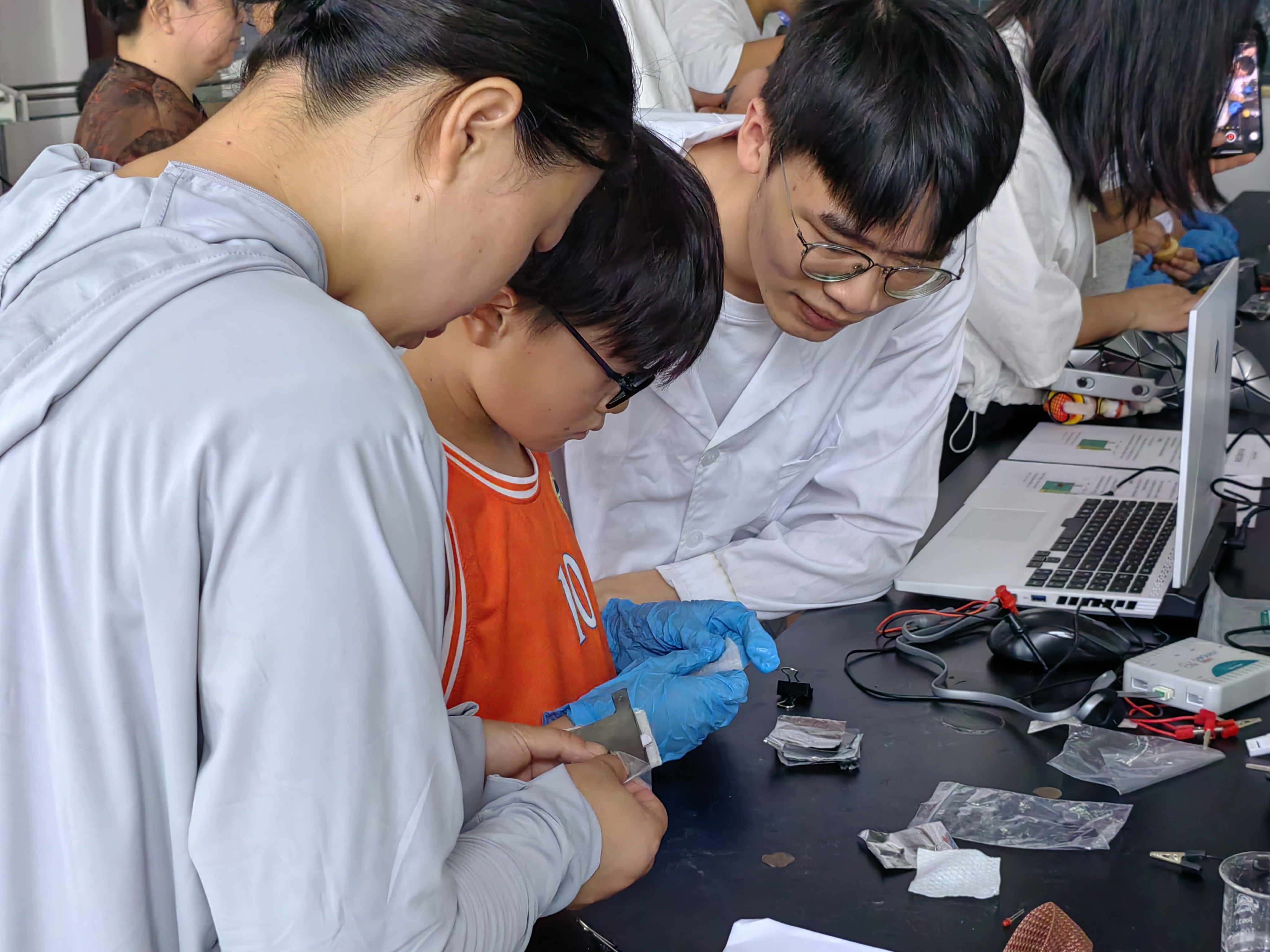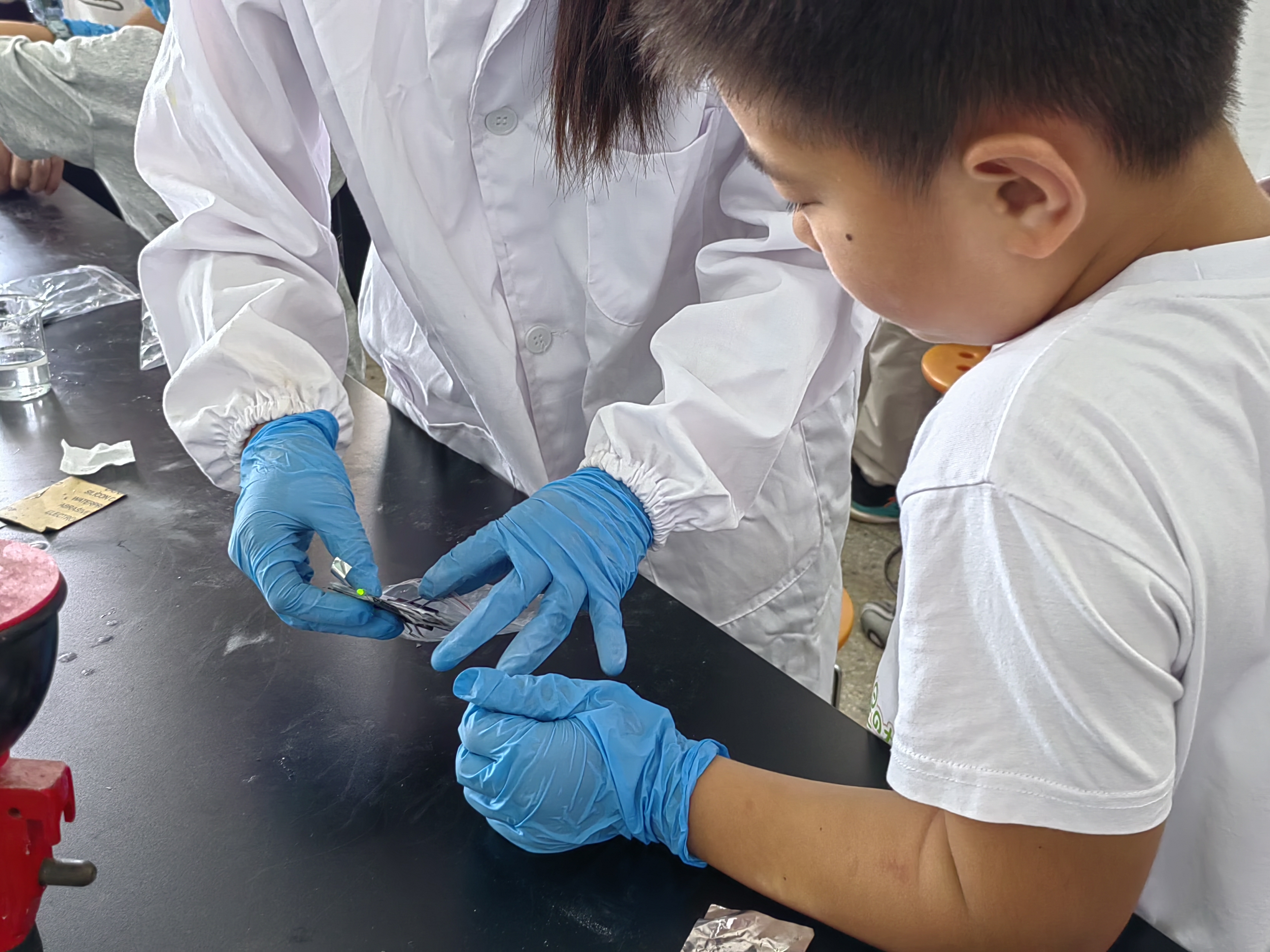 9 月 6 日上午,孩子们共同体验 “纸上发电”“制作水果电池” 等趣味操作:用“纸张”合成电池、用导线连接水果,当发光二极管成功亮起时,孩子们的欢呼声充盈实验室。相较于传统实验依赖感官与简单仪器的局限,此次活动通过趣味场景与产品制作,让基础教育领域员工打破对化学的陌生感,在动手间感受科技与生活的紧密联系。