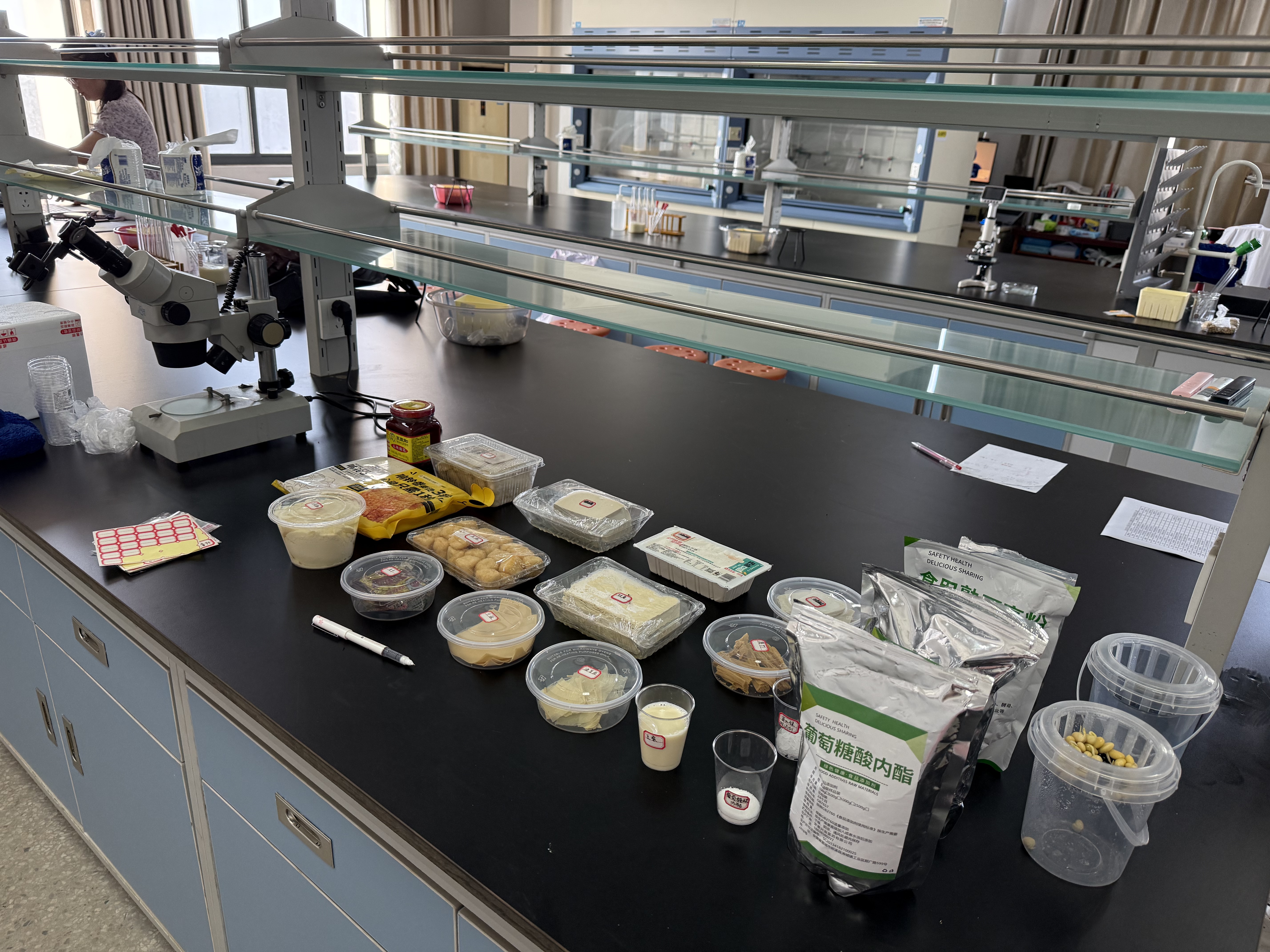 9 月 7 日上午则聚焦 “豆腐里的化学密码”,将探索推向深入。志愿者铺垫完豆腐的历史文化背景后,抛出 “豆浆都是胶体吗?”“蛋白质变性如何影响口感?”“凝固剂作用原理是什么?” 等问题,引导老员工开启 “科研式体验”。员工们分组设计对照实验,有的探究石膏、内酯、卤水三种凝固剂对豆腐质地的影响,有的分析煮浆温度与时间对成品口感的作用,还有的调整豆水比例以观察其与豆腐硬度的关联。
