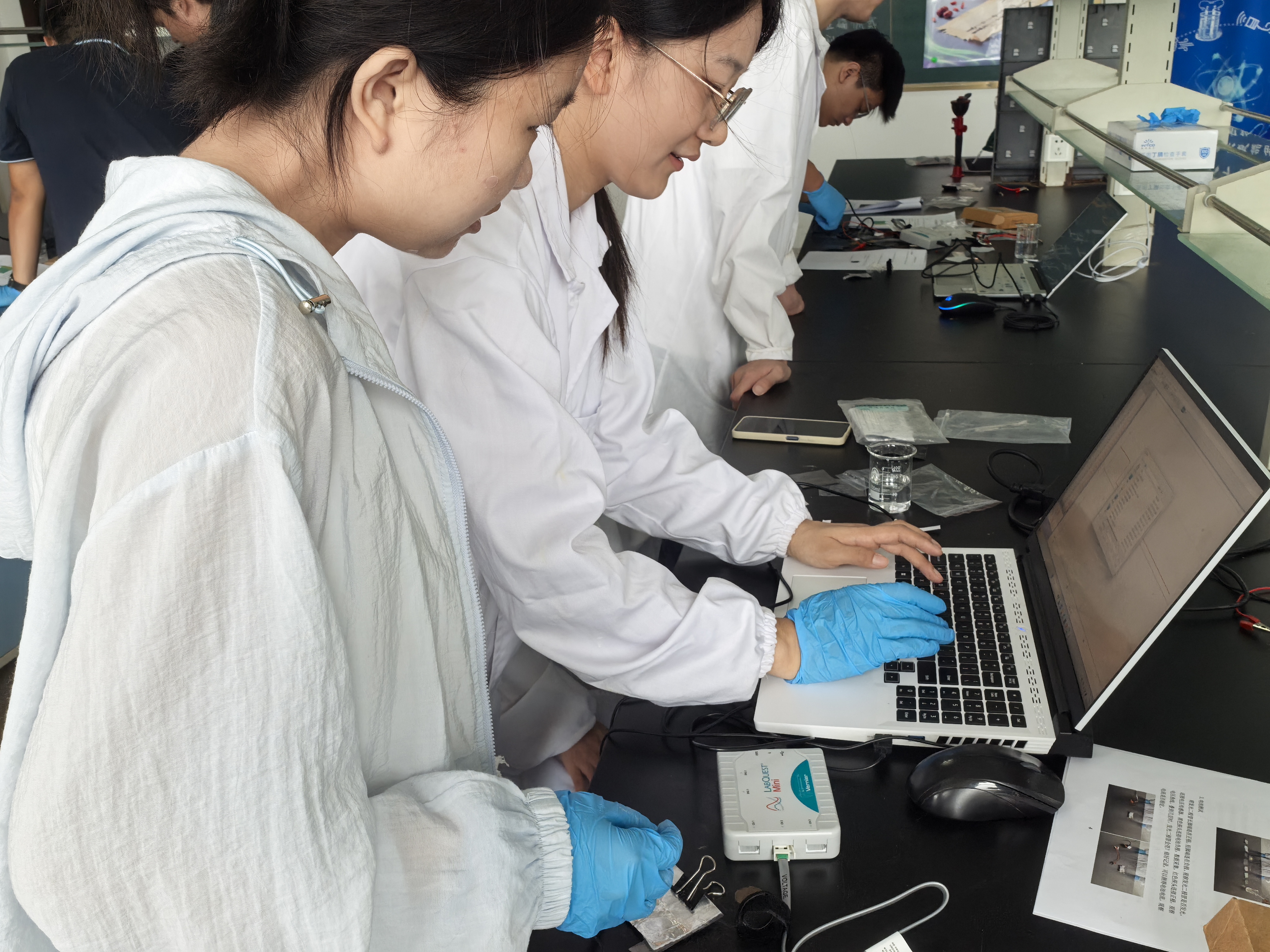 9 月 7 日上午,面向生物、化学、物理三个专业的老员工,活动更注重学科深度,参与者借助电压、电流传感器,实时采集纸电池、水果电池的实验数据,数据经专业软件生成动态曲线,将 “看不见” 的电流电压变化过程清晰具象化。