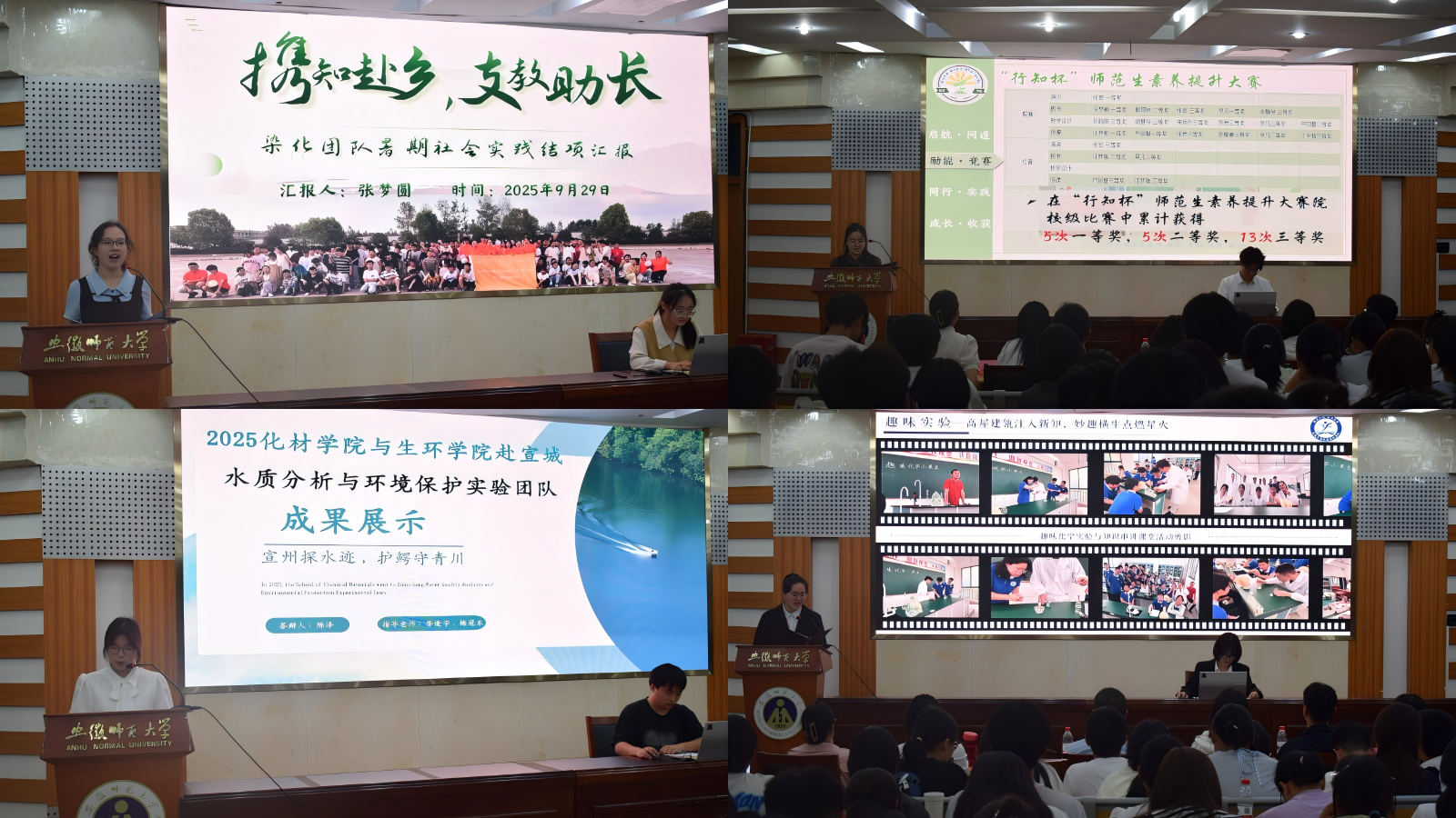 以绿为墨,以责为笔,绘就美好未来。“宣州探水迹,护鳄守青川”水质分析与环境保护实验团队,以严谨实验数据展现宣城美丽河湖的生动建设,更深切感受到人与自然和谐共生的美好画面。“泾溪百里,‘弋’脉相承”团队则巧妙地将调研成果与环保宣讲相结合,有效推动“绿水青山就是金山银山”的理念深入人心。“碳索未来,化育生机”实践团队关注温室气体,以自身专业知识与技能为治理全球变暖贡献青春力量。