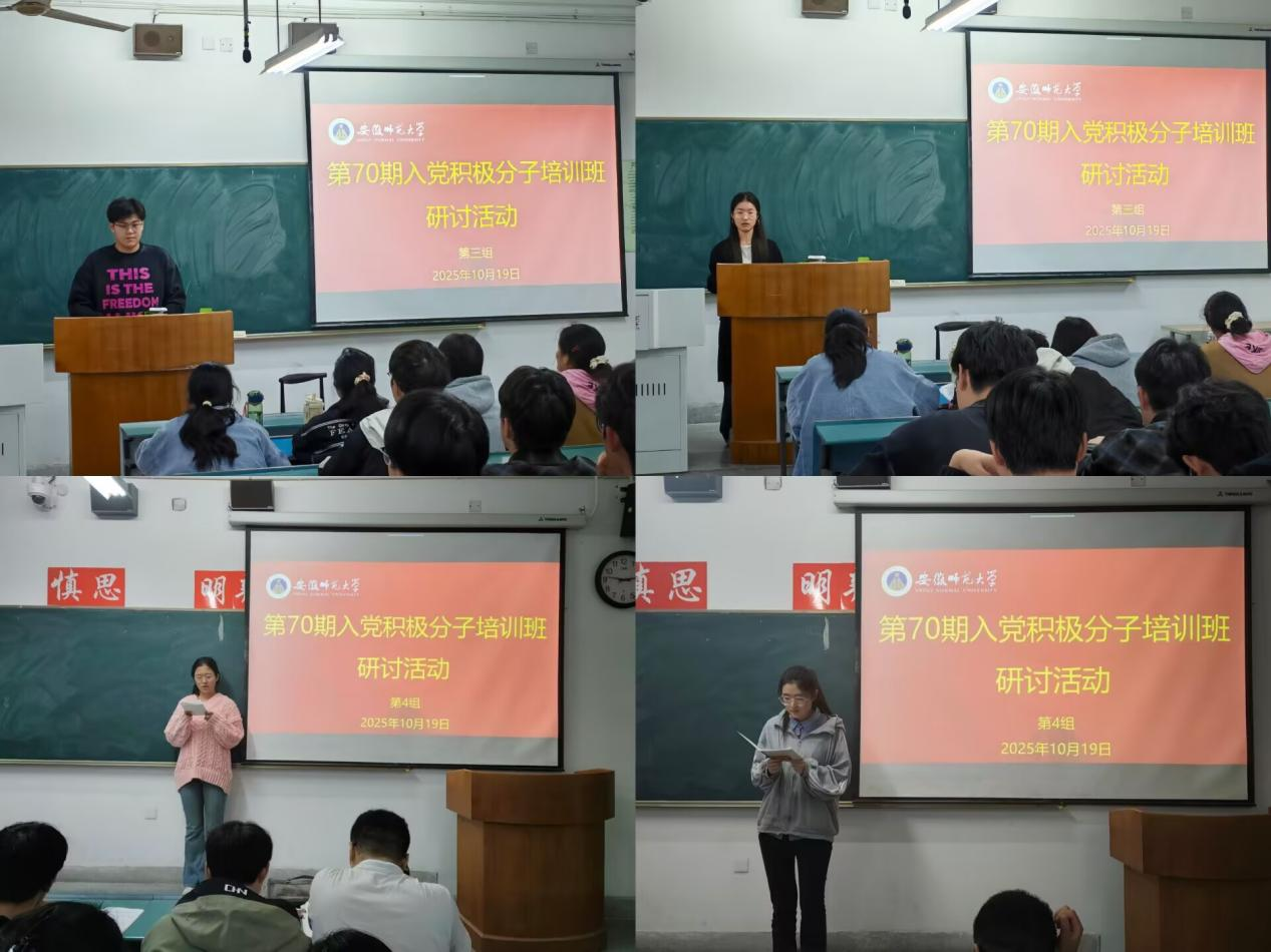 10月19日下午,全体学员以小组为单位开展主题研讨,围绕“青春挺膺担当,投身强国复兴新征程”以及“作为入党积极分子,如何以党员标准规范日常言行、发挥榜样作用”两大主题,展开深入讨论。研讨结束后,培训班开展了结业考试,检验学习成效,巩固培养成果。