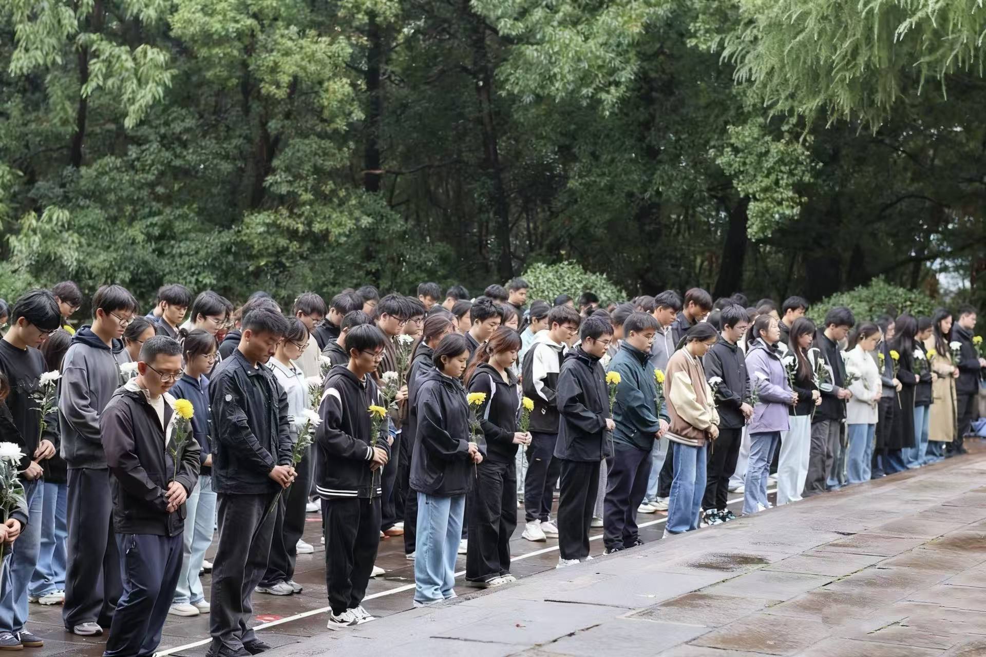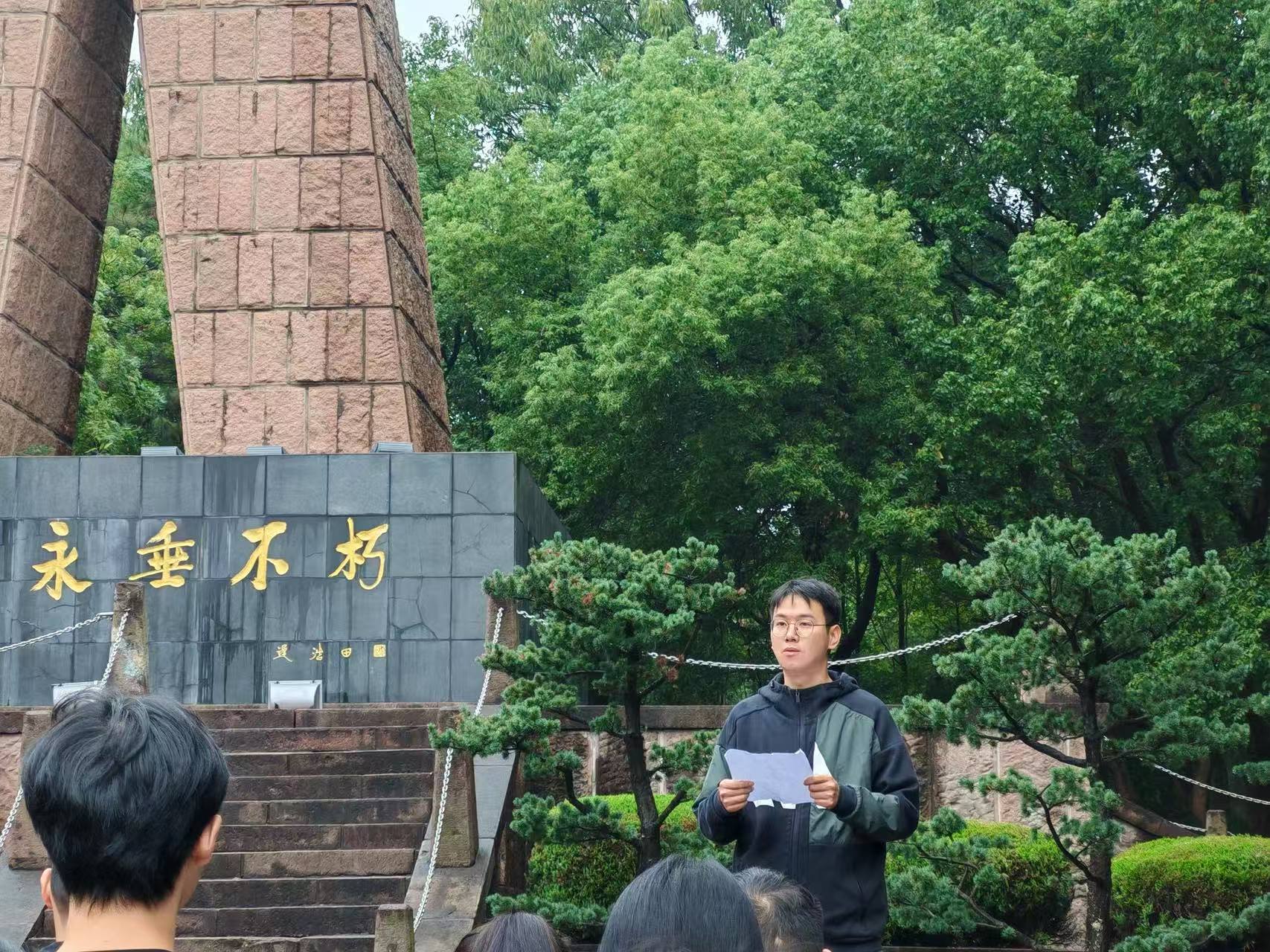 10月19日上午,全体入党积极分子赴芜湖市烈士陵园开展红色教育实践活动。在庄严肃穆的烈士纪念碑前,学员们整齐列队、静立默哀,深切缅怀为民族解放和国家振兴英勇献身的革命先烈。随后,大家分组有序上前,向纪念碑敬献鲜花,以简洁而庄重的仪式寄托对先烈的崇敬与哀思。