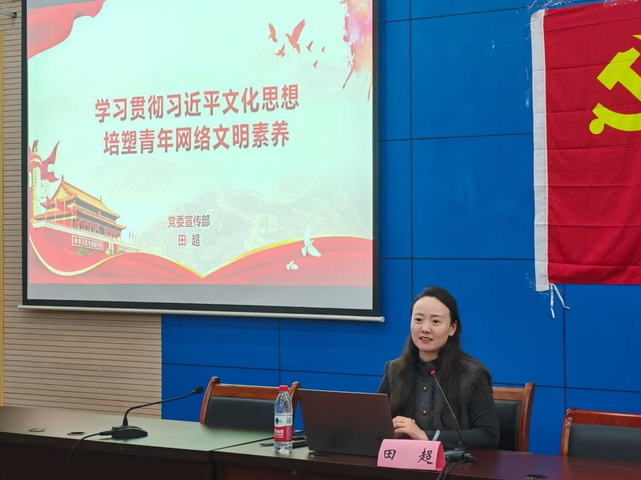 党委宣传部副部长田超以《学习贯彻习近平文化思想,培塑青年网络文明素养》为主题,系统梳理了习近平文化思想的提出背景与形成历程,重点阐释了该思想以“七个着力”为核心的丰富内涵,并逐一对“七个着力”的具体内容进行了深入细致的解读。最后,她寄语全体学员,作为新时代青年学子和入党积极分子,要学会科学合理运用网络,着力提升自身的网络学习能力、信息甄别能力、自我约束能力与认知判断能力,以过硬本领应对和破解网络环境中的各类问题,切实筑牢网络文明防线。