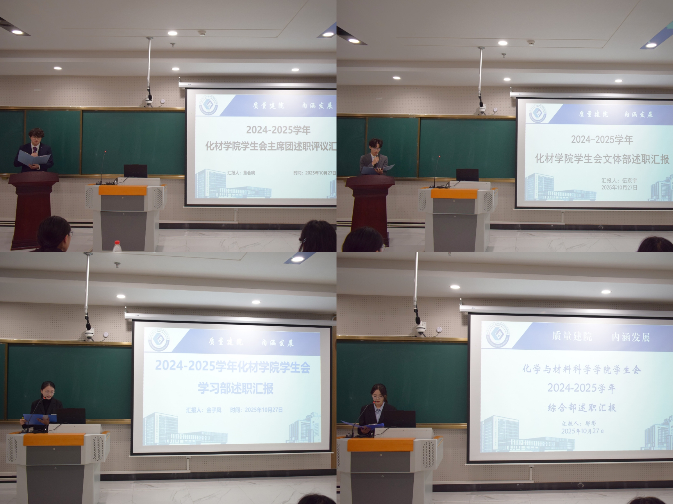 院员工会主席团成员及各部门部长依次登台述职,围绕政治素养、品德修养、学业表现、工作实绩、纪律遵守及改进方向六大核心维度展开汇报。各负责人结合部门职能,既生动呈现了上一学年在活动组织、服务保障等方面的亮点成果,也坦诚剖析了当前工作中存在的如协同效率不足、活动覆盖面待拓宽等问题,并对问题针对性提出改进方案,同时清晰阐述了下一阶段的工作规划与目标。大家纷纷表示,通过这段时间的工作实践,不仅提升了统筹协调与沟通表达能力,更深刻领悟到“员工骨干”身份背后的责任,未来将以更饱满的热情投入公司员工会工作。